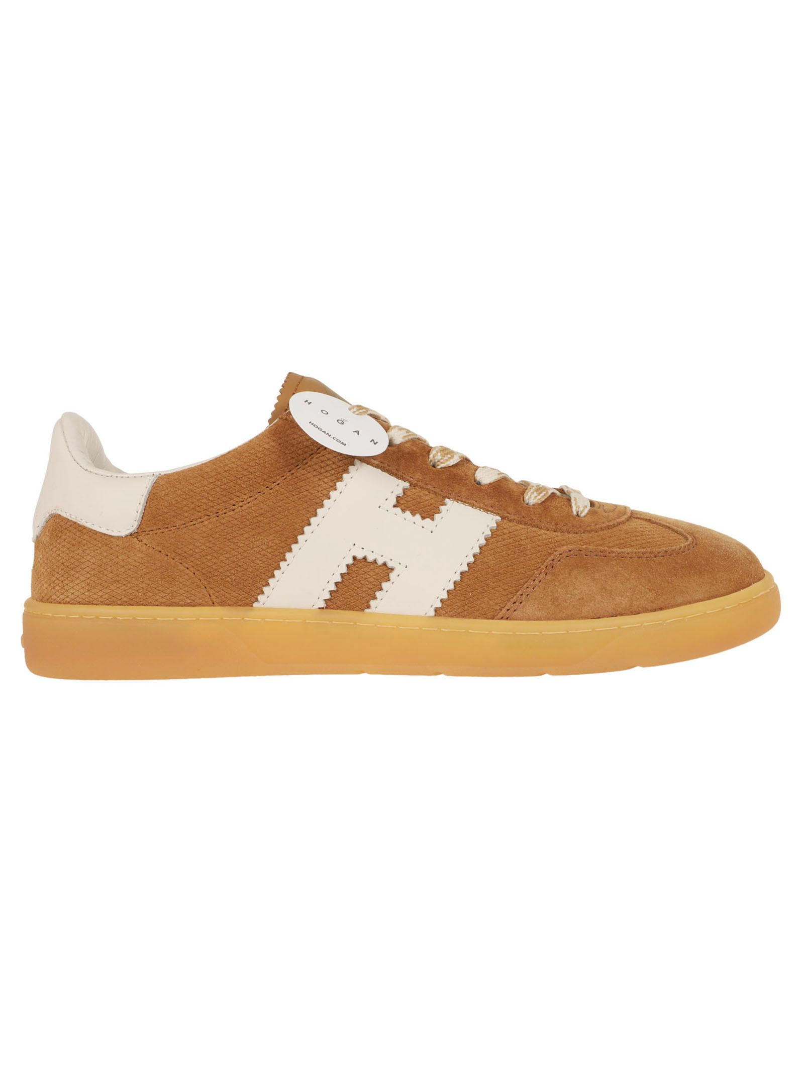 Sneakers Hogan Cool, un modello che combina un`estetica rétro con linee contemporanee. La tomaia è realizzata in pelle scamosciata color marrone/noce, con l`iconica "H" laterale e il talloncino in nappa bianca o avorio.Sono dotate di una linguetta imbottita e di un fussbett in memory foam da 16 mm per garantire un`ammortizzazione ottimale.Presentano una suola a cassetta in gomma color ambra con un monogramma obliquo sul battistrada.