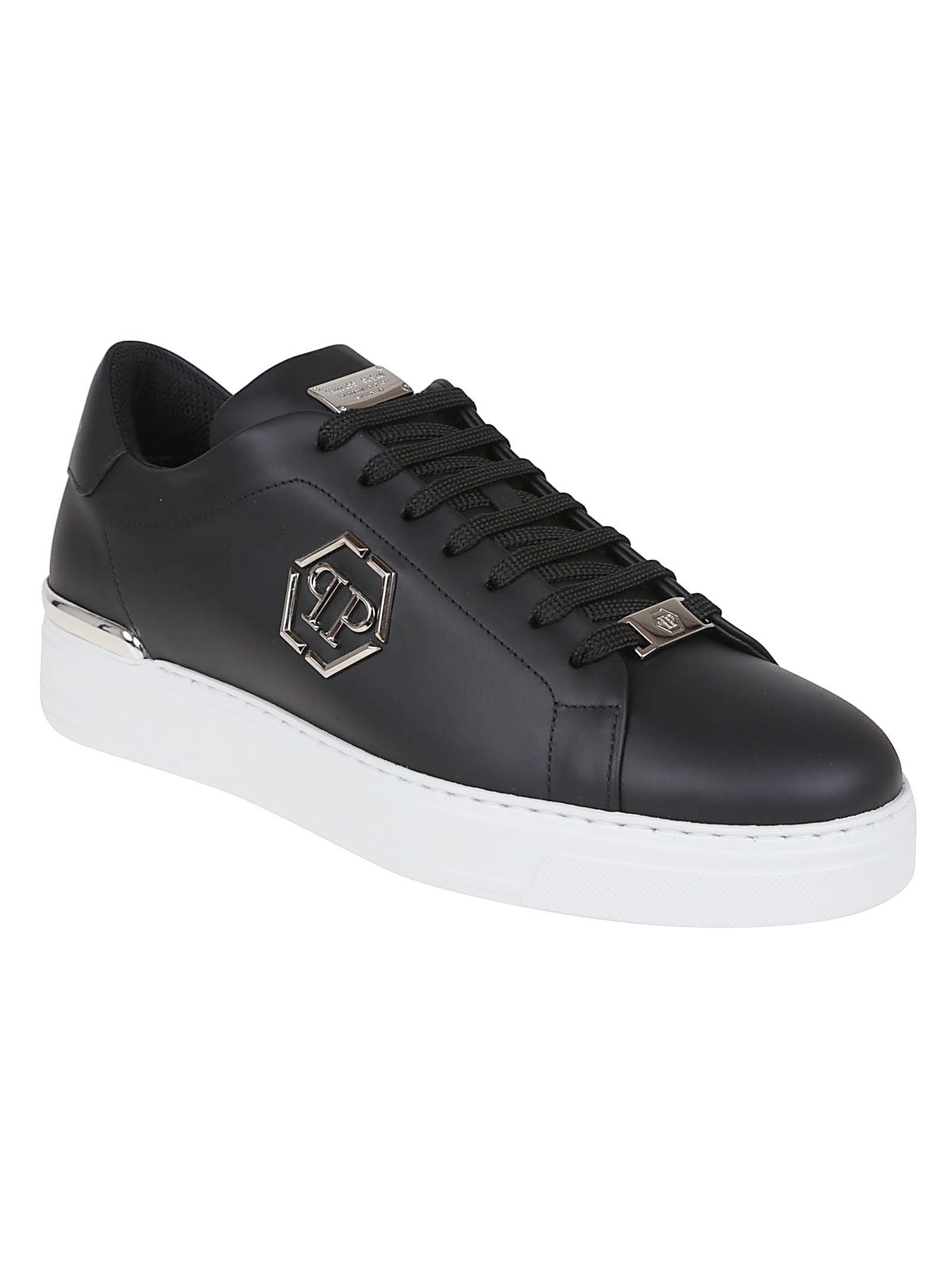 Sneakers LO-TOP HEXAGON in pelle BY PHILIPP PLEIN.Punta tonda; chiusura frontale con lacci; suola in gomma.Caratterizzate da placca e patch del Logo in brass.