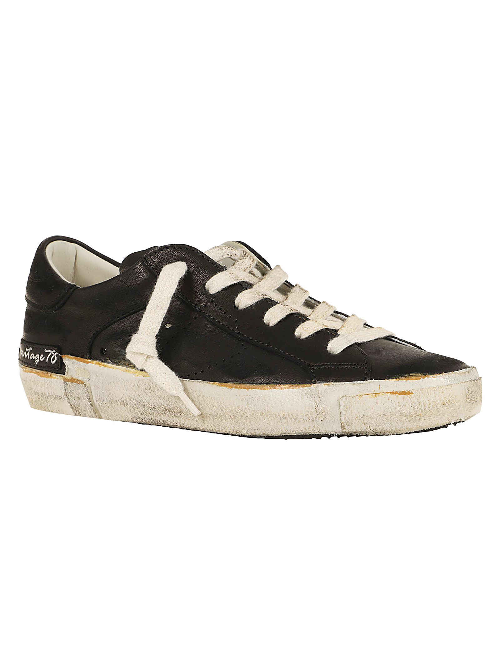 Sneaker Prsx in vitello e suede con finiture worn out BY PHILIPPE MODEL.Suola in gomma ultra leggera con fasciatura artigianale e sporcature.Dettaglio scudetto laterale e topponcino con stampa sul retro.