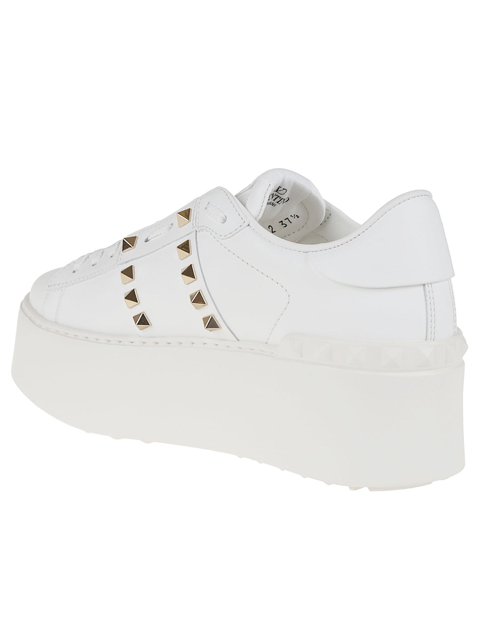 Sneaker flatform Rockstud Untitled in pelle di vitello di VALENTINO GARAVANI.Suola in gomma (5,7cm) con dettaglio borchie in gomma sul retro.Caratterizzata da banda con applicazione di borchie finitura platino; etichetta speciale con numero 11.