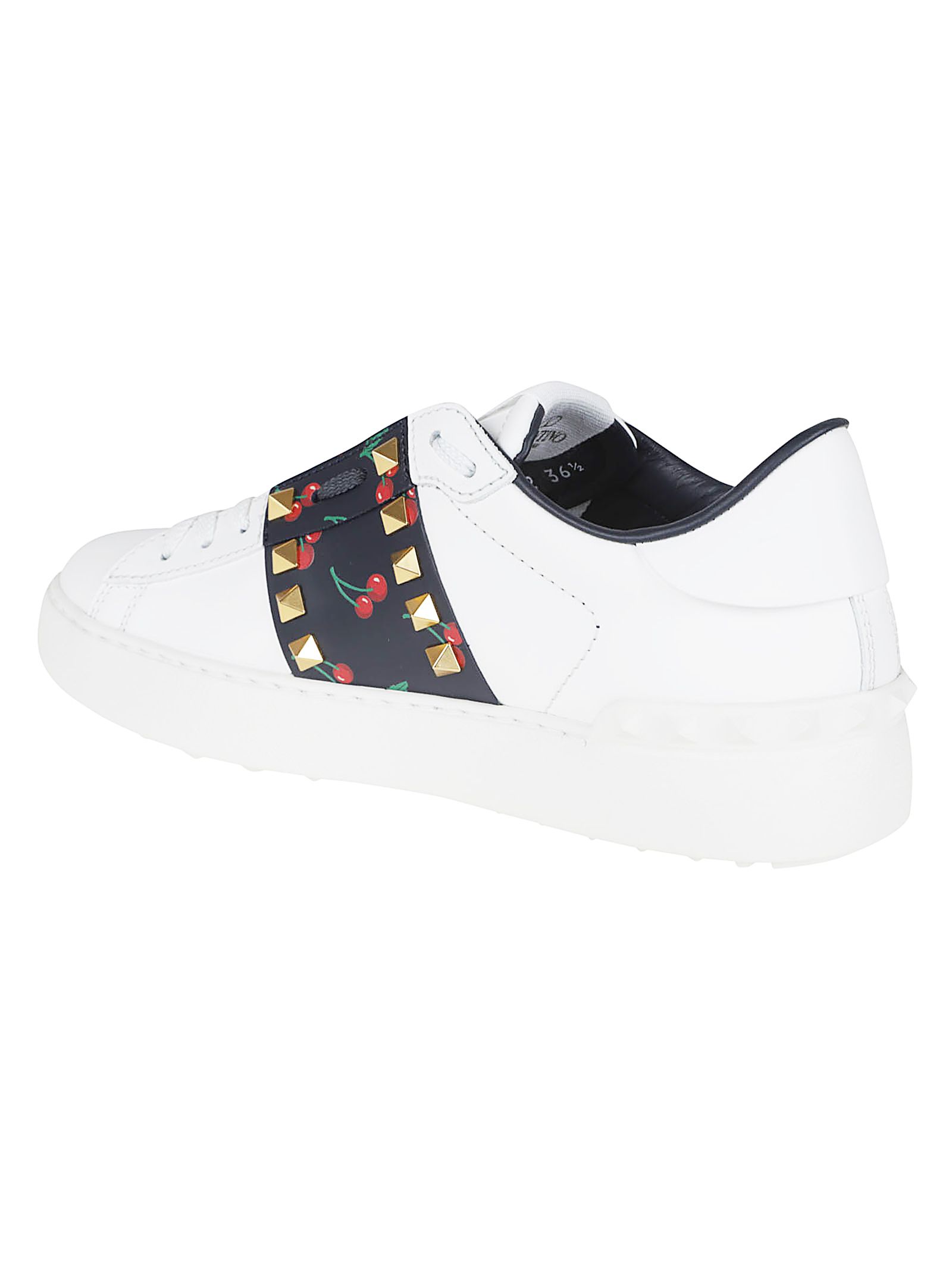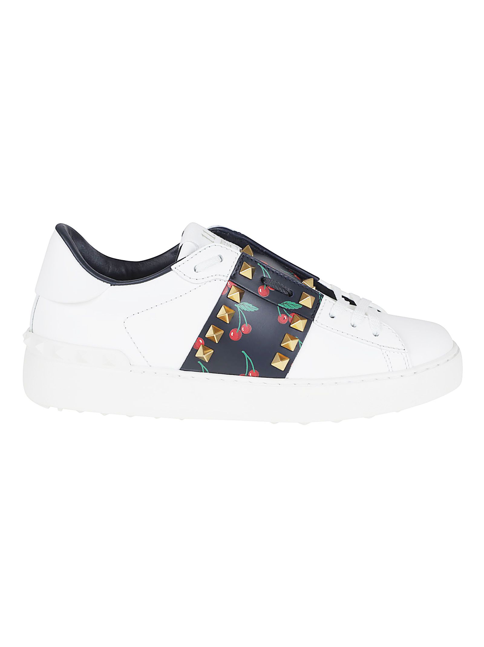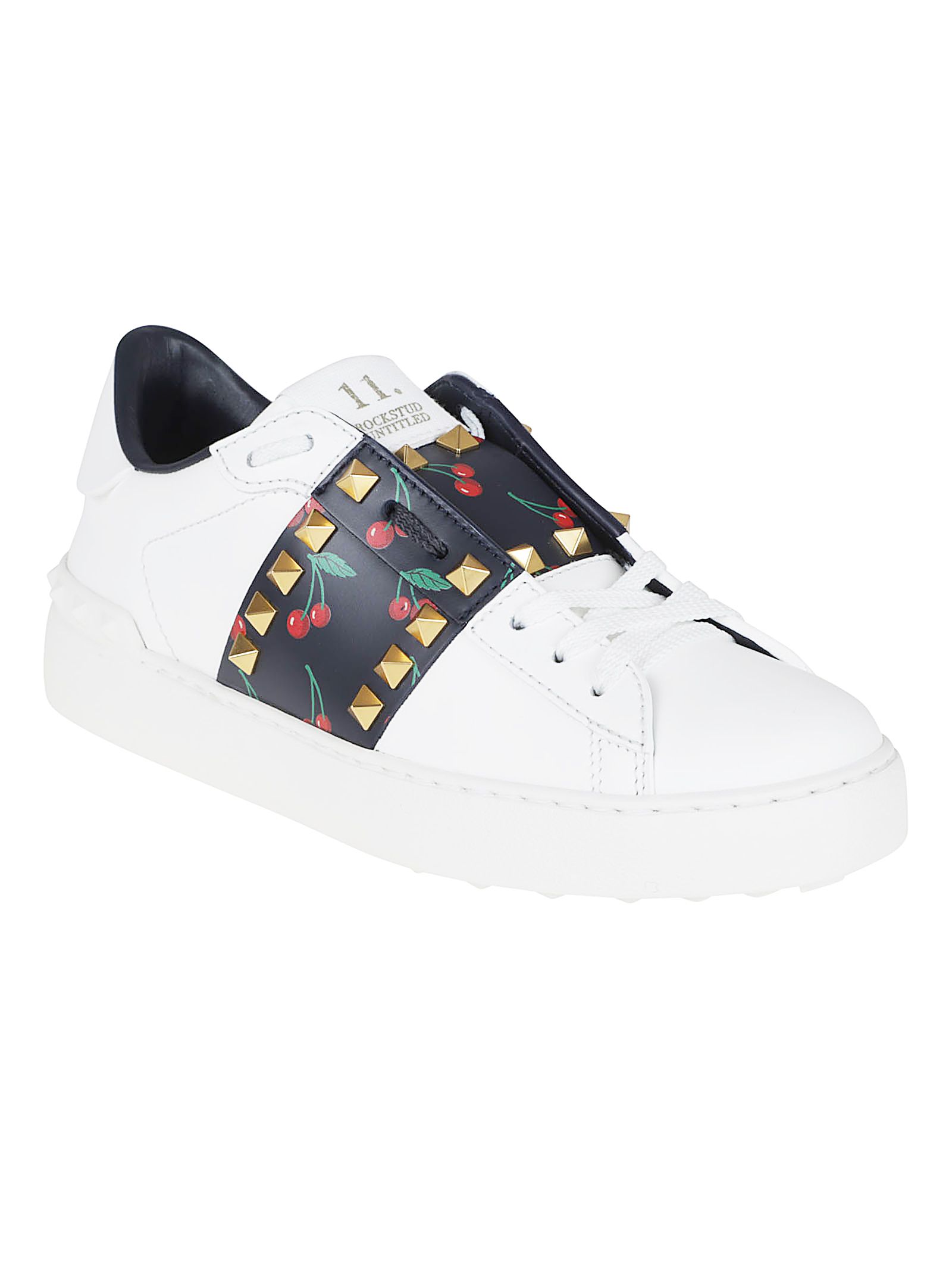 Sneaker Rockstud Untitled in pelle di vitello di VALENTINO GARAVANI.Banda in vitello colorata a contrasto con con motivo Cherryfic con applicazione di borchie.Etichetta speciale con numero 11.