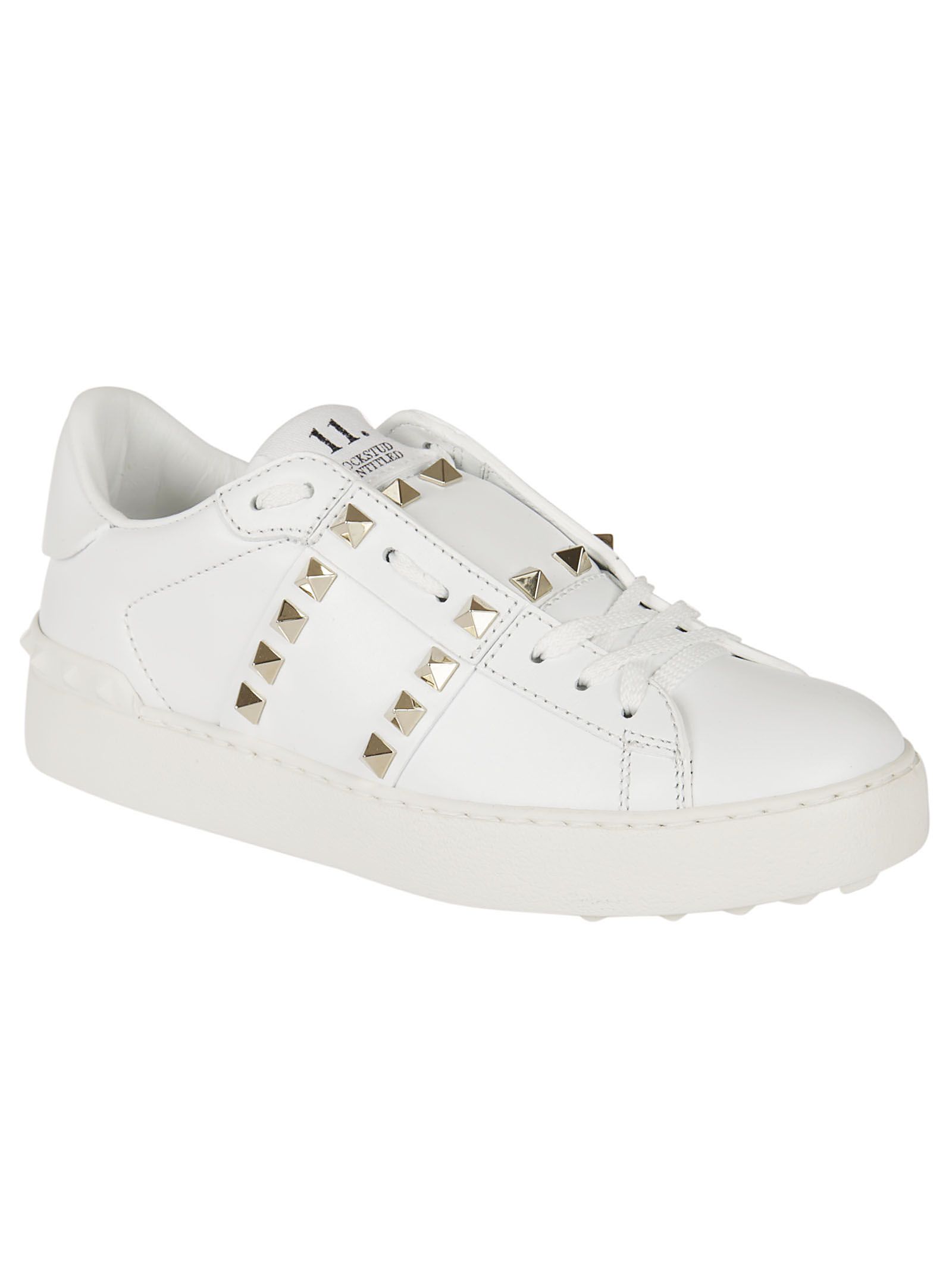 Sneaker Rockstud UNTITLED in pelle di vitello bianco by VALENTINO GARAVANI.Etichetta con numero 11 presente sulla linguetta.Caratterizzata da banda con borchie oro.Un must del brand, presente in tutte le collezioni con la variante del colore della pelle e delle borchie. Ideale da essere indossata sia con un jeans per un outfit casual sia con un pantalone per un outfit più elegante!