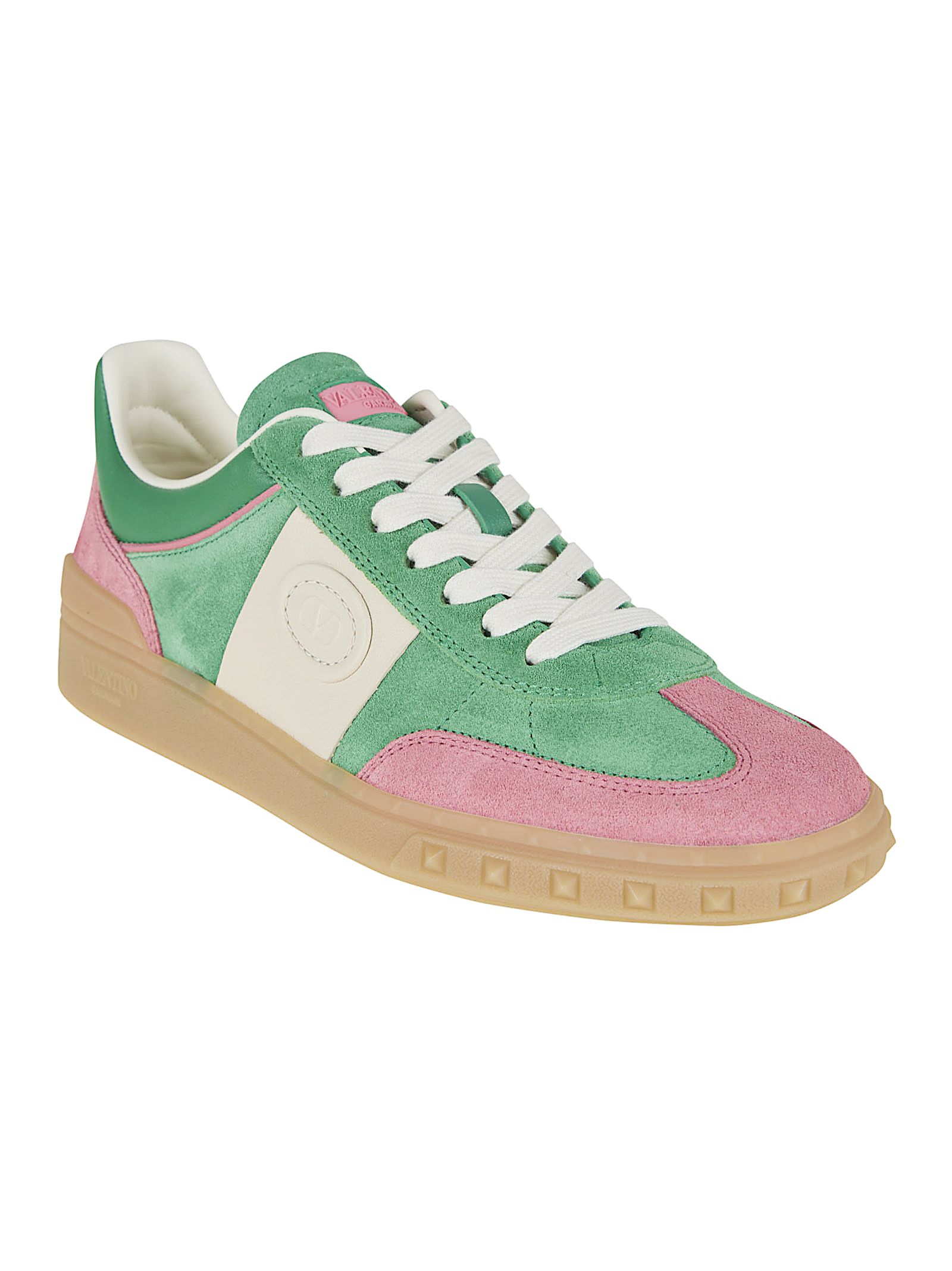 Sneaker Low Top UPVILLAGE in crosta e vitello nappato di VALENTINO GARAVANI.Suola in Gomma personalizzata con dettaglio borchie.Caratterizzata da banda in vitello nappato con dettaglio Vlogo Signature e Logo Valentino Garavani serigrafato su linguetta.
