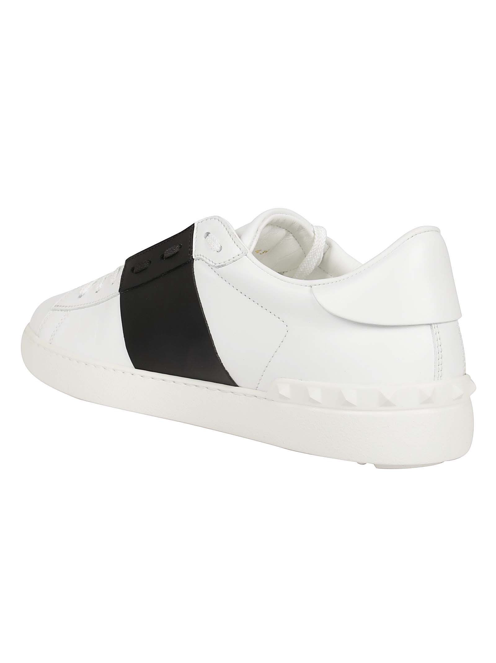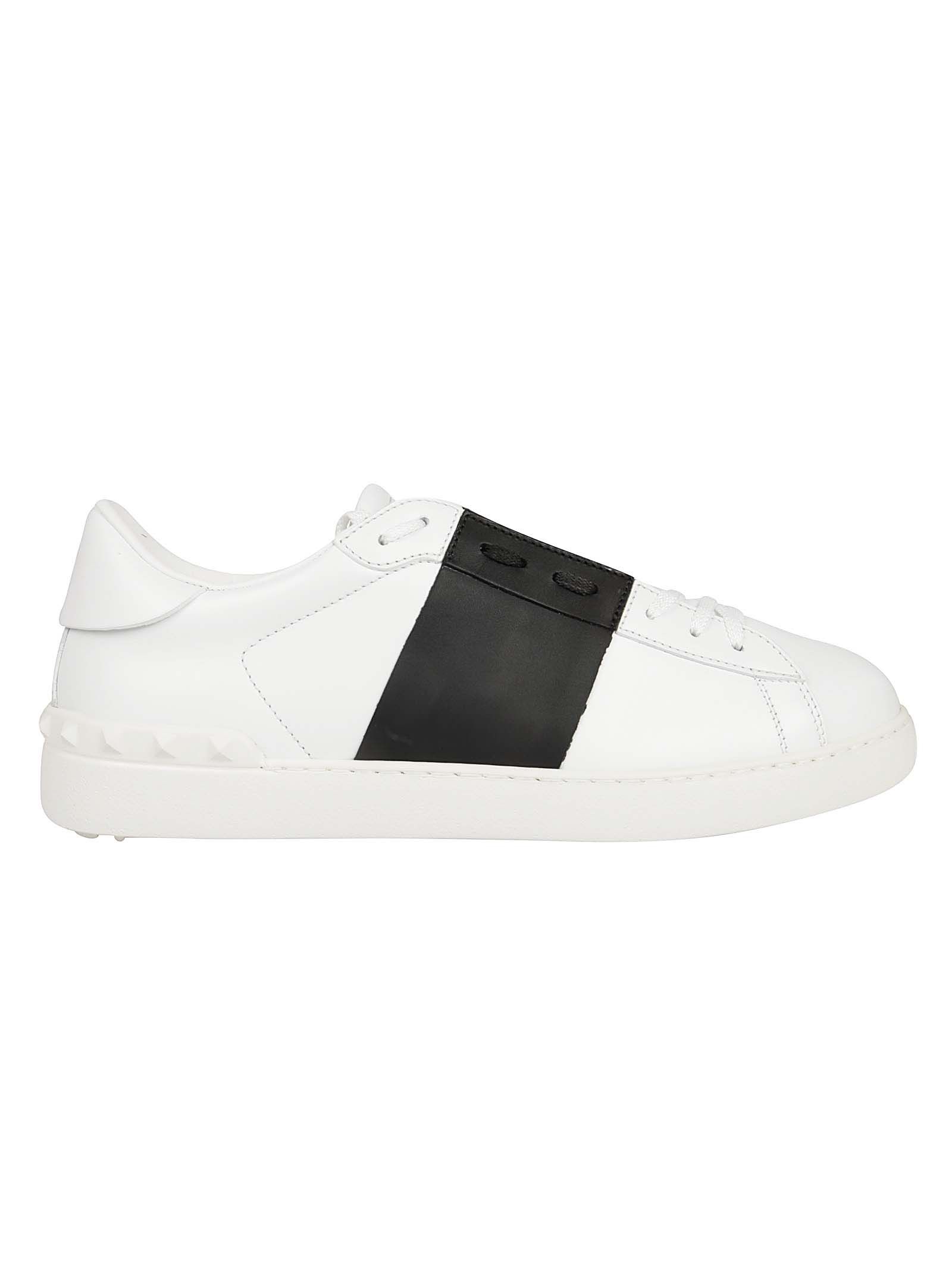 Classica sneakers Open VALENTINO GARAVANI in pelle di vitello bianca. Caratterizzata da banda a contrasto in pelle. Suola in gomma bianca con borchie sul retro tono su tono. Ideale da essere indossata sia per un outfit casual, sia per un outfit più elegante.Un must del brand, presente in tutte le collezioni con la variante del colore!