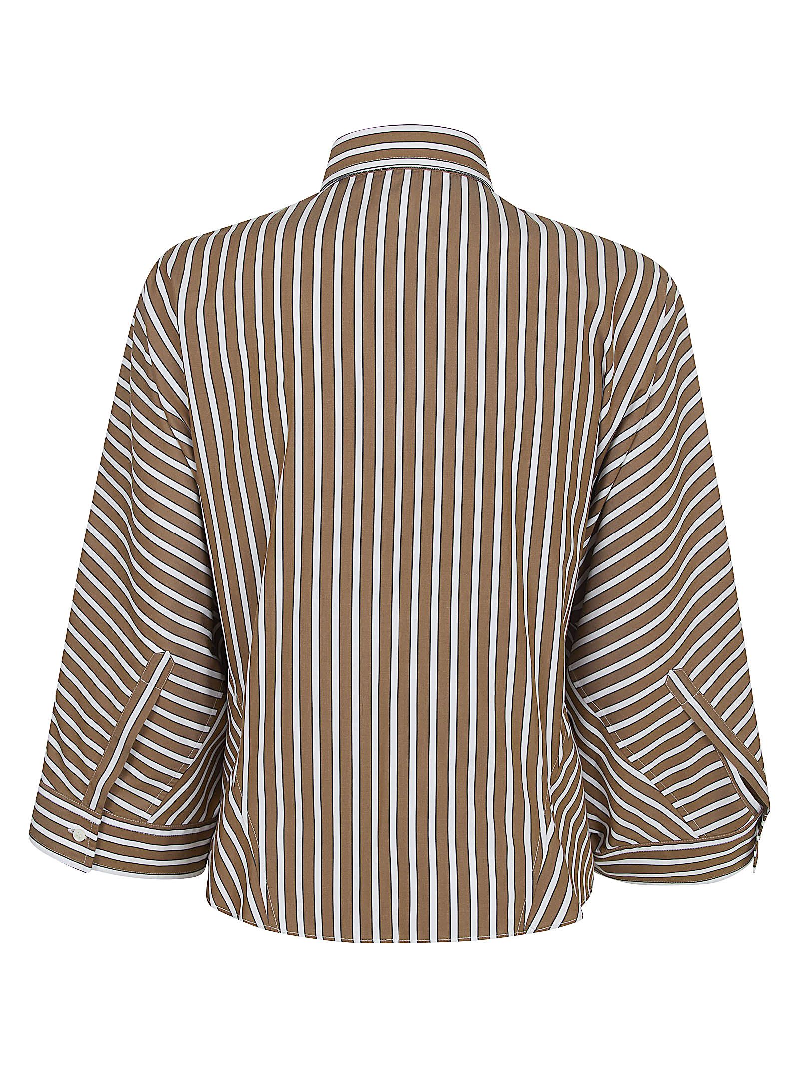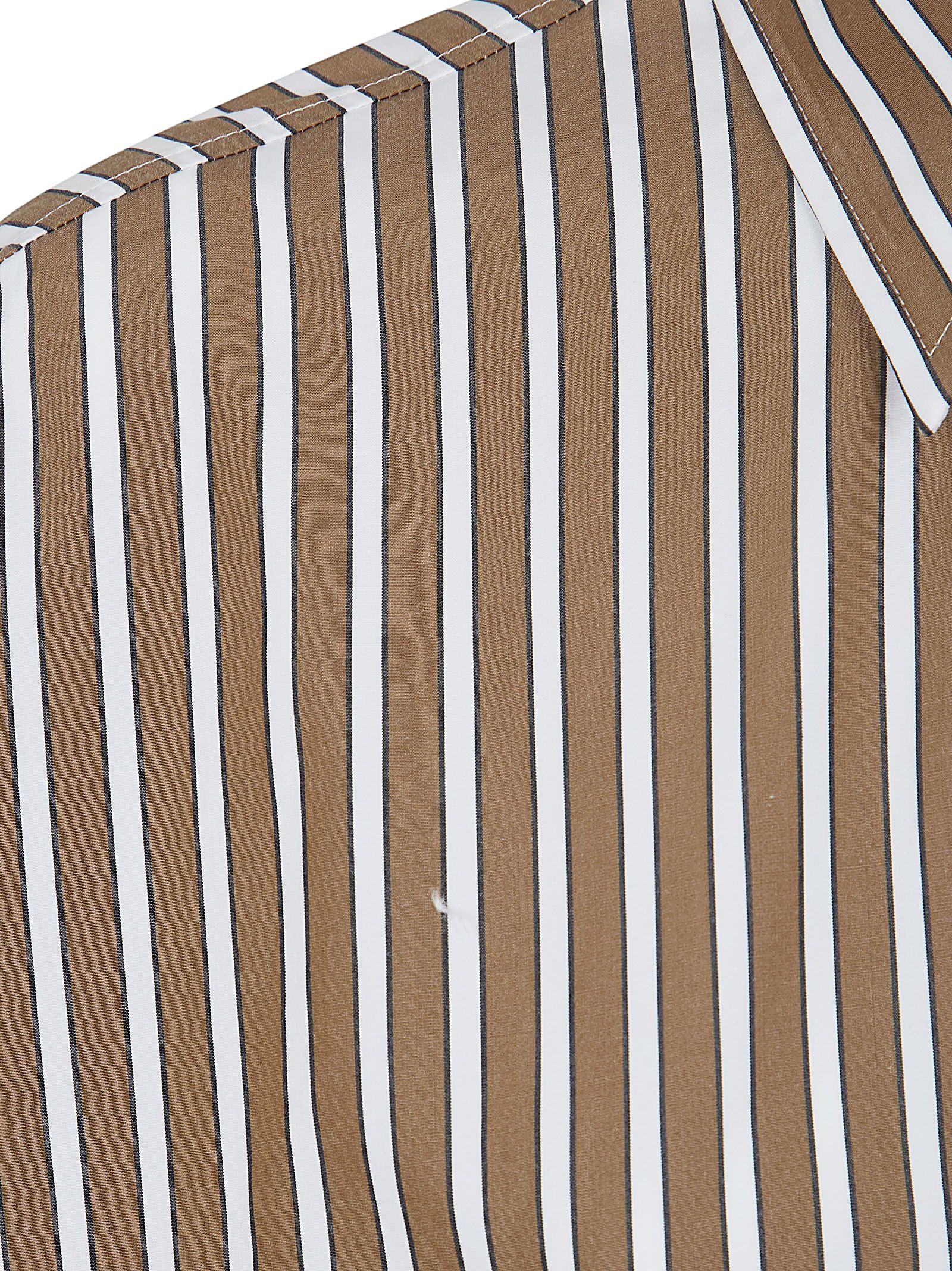 Camicia in popeline di cotone di BRUNELLO CUCINELLI.Modello con volumi dal leggero taglio "cropped" e spalla abbassata; ampie maniche a tre quarti; chiusura con bottoni in madreperla presenti anche sui polsini; colletto classico.Caratterizzata da classica riga rivisitata con un effetto "shadow" che dona un tocco di profondità e di movimento e impreziosita da ricamo in monile Nickel-free.