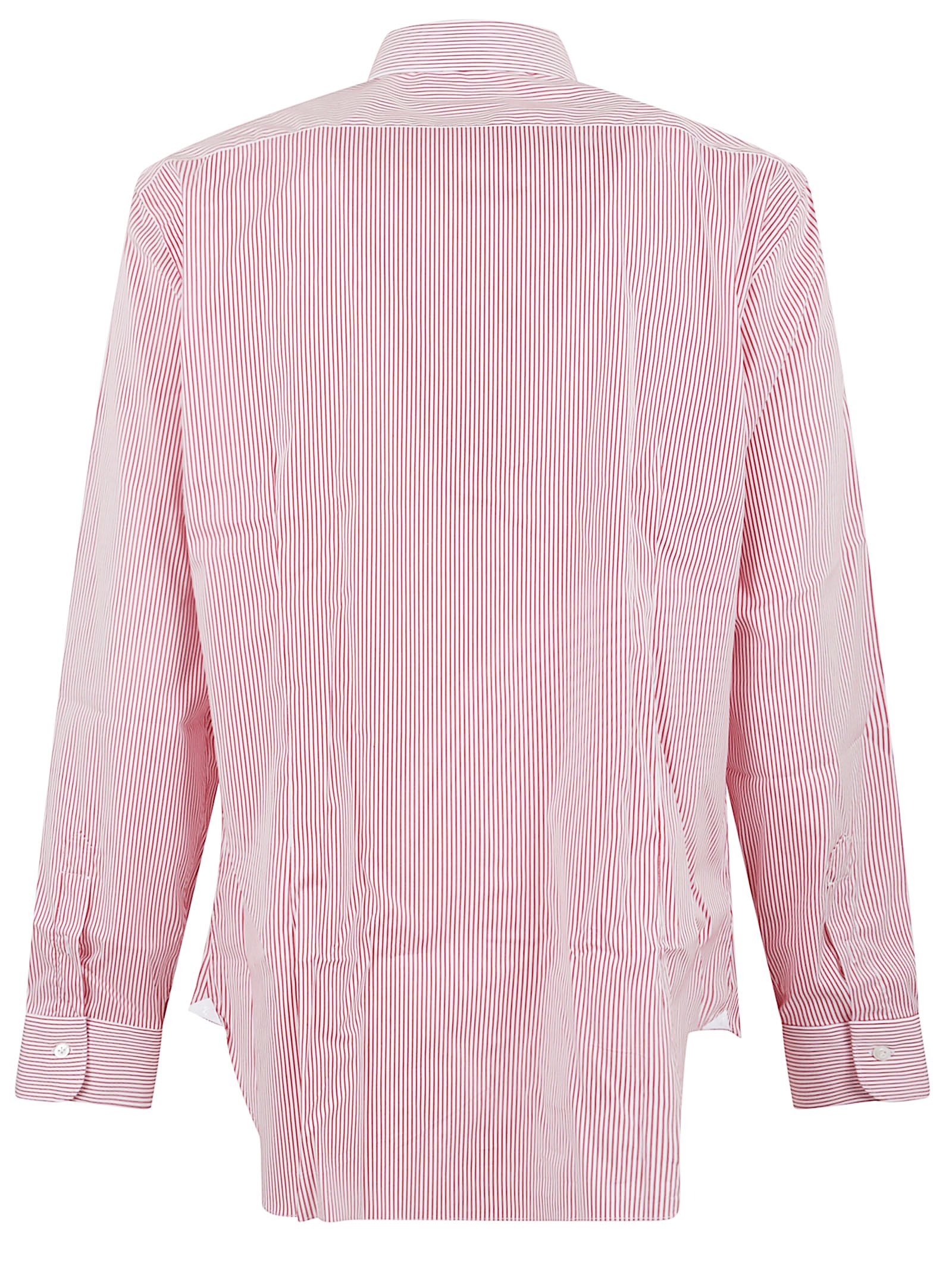 Camicia in puro cotone di BUONAMASSA NAPOLI.Chiusura frontale con bottoni a vista, presenti anche sui polsini; colletto classico.Design vestibilità regolare, fondo arrotondato. Dettaglio a righe rosse.