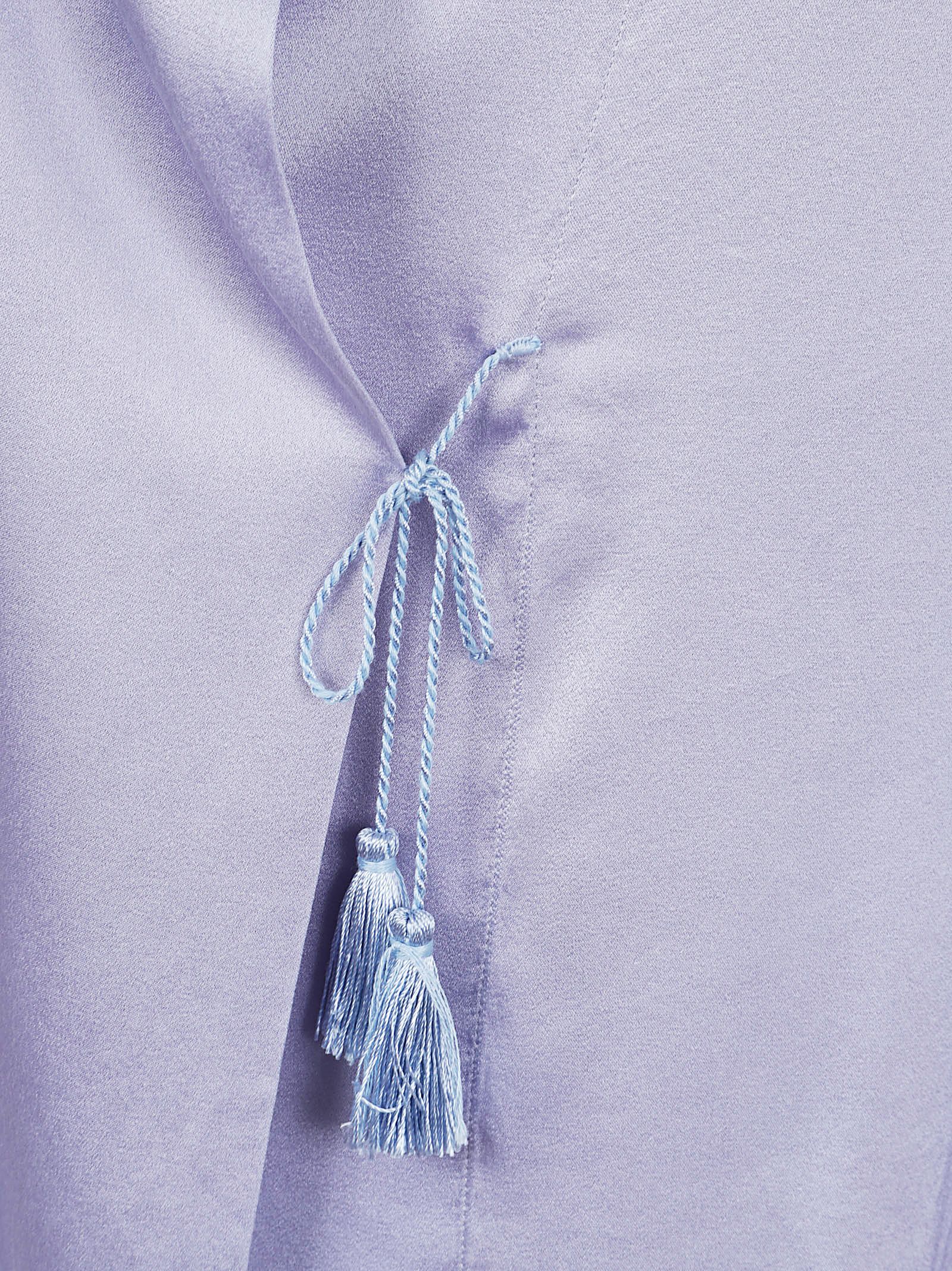 Camicia in seta allacciata a doppio petto con piccolo drappo e girocollo.