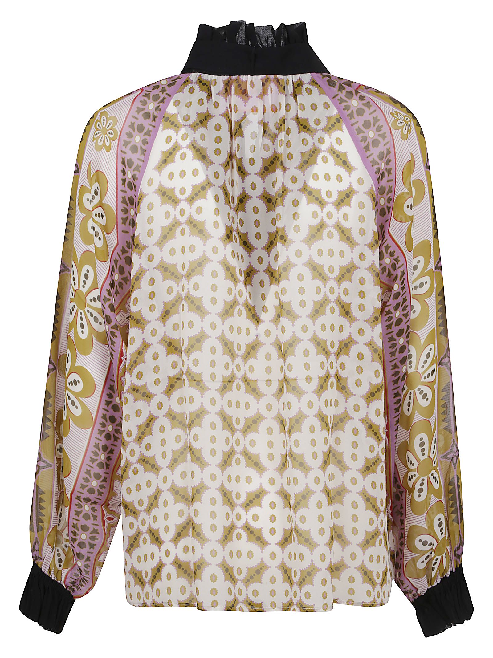 Camicia Cerere Blouse in chiffon di seta di LA DOUBLEJ.Scollo a V; maniche a sbuffo; design taglio vintage.Caratterizzata da foulard rimovibile sul collo che può essere annodato, indossato come cintura o lasciato libero e svolazzante.Caratterizzata da fantasia applicata a mano Pencil Skirt.