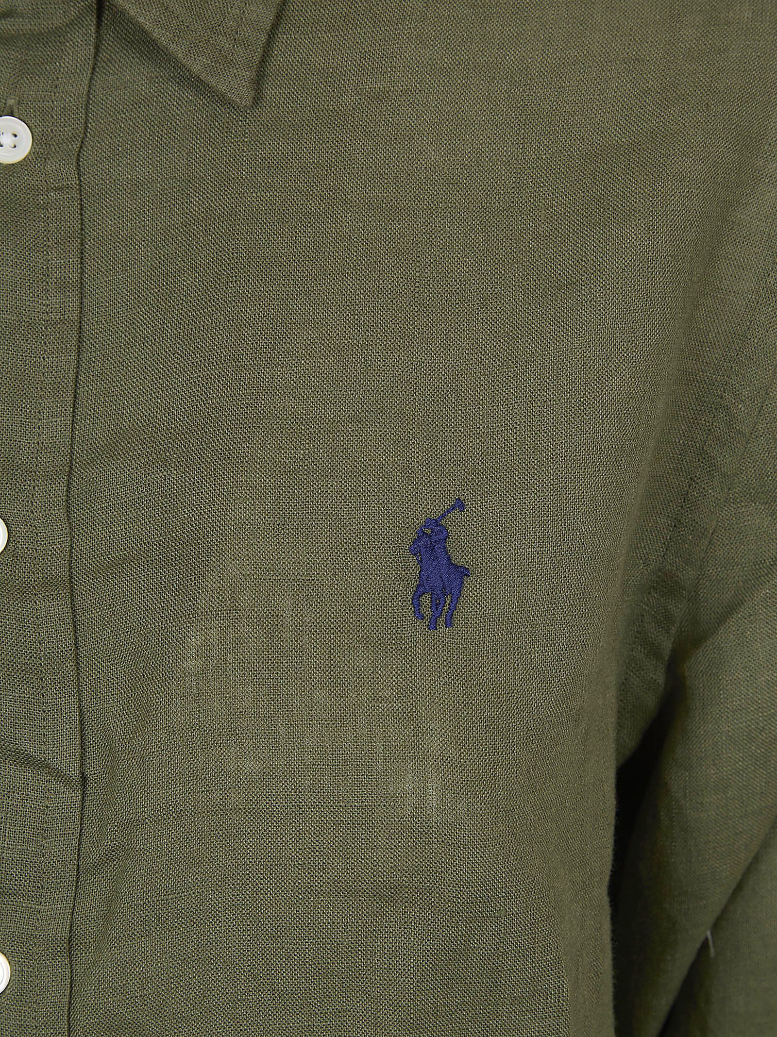 Camicia in lino leggero di POLO RALPH LAUREN.Collo a punta; maniche lunghe; chiusura con cannoncino con bottoni in madreperla presenti anche sui polsini; design taglio dritto, lunghezza ai fianchi e crré posteriore con pieghe a cannoncino.Caratterizzata da esclusivo pony ricamato.
