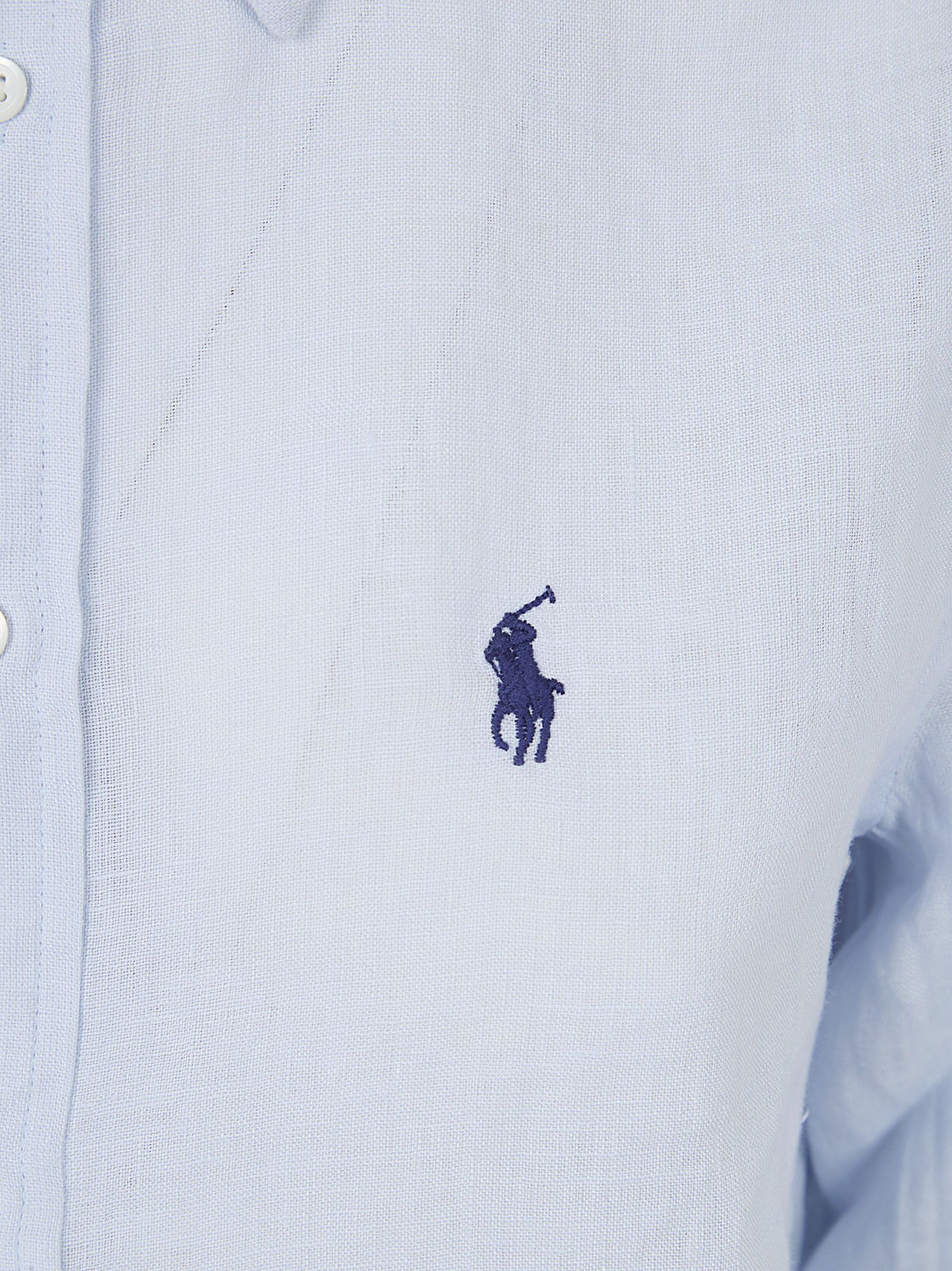 Camicia in lino leggero di POLO RALPH LAUREN.Collo a punta; maniche lunghe; chiusura con cannoncino con bottoni in madreperla presenti anche sui polsini; design taglio dritto, lunghezza ai fianchi e crré posteriore con pieghe a cannoncino.Caratterizzata da esclusivo pony ricamato.