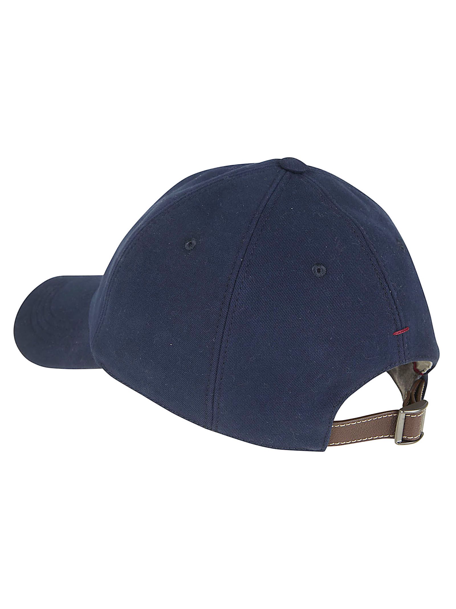 Cappello da baseball in gabardina di cotone di BRUNELLO CUCINELLI.Visiera rinforzata; cintino regolabile con fibbia.Caratterizzato da Logo araldico di Solomeo ricamato sul davanti.
