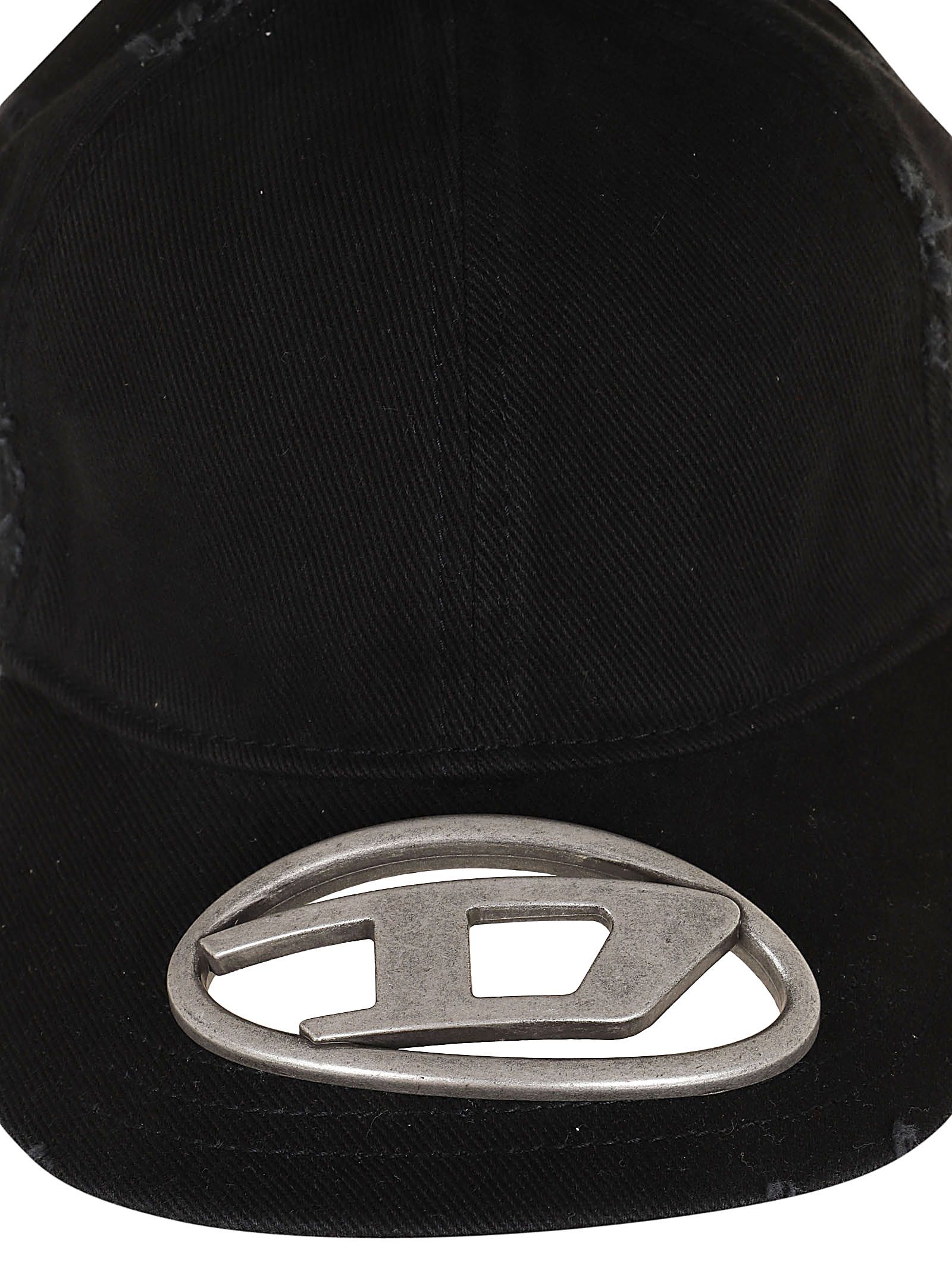 Cappello da baseball in twill di cotone compatto con finitura washed BY DIESEL. Dettaglio intaglio ovale, su cui è incastonato il logo Oval D in metallo presente sulla visiera.