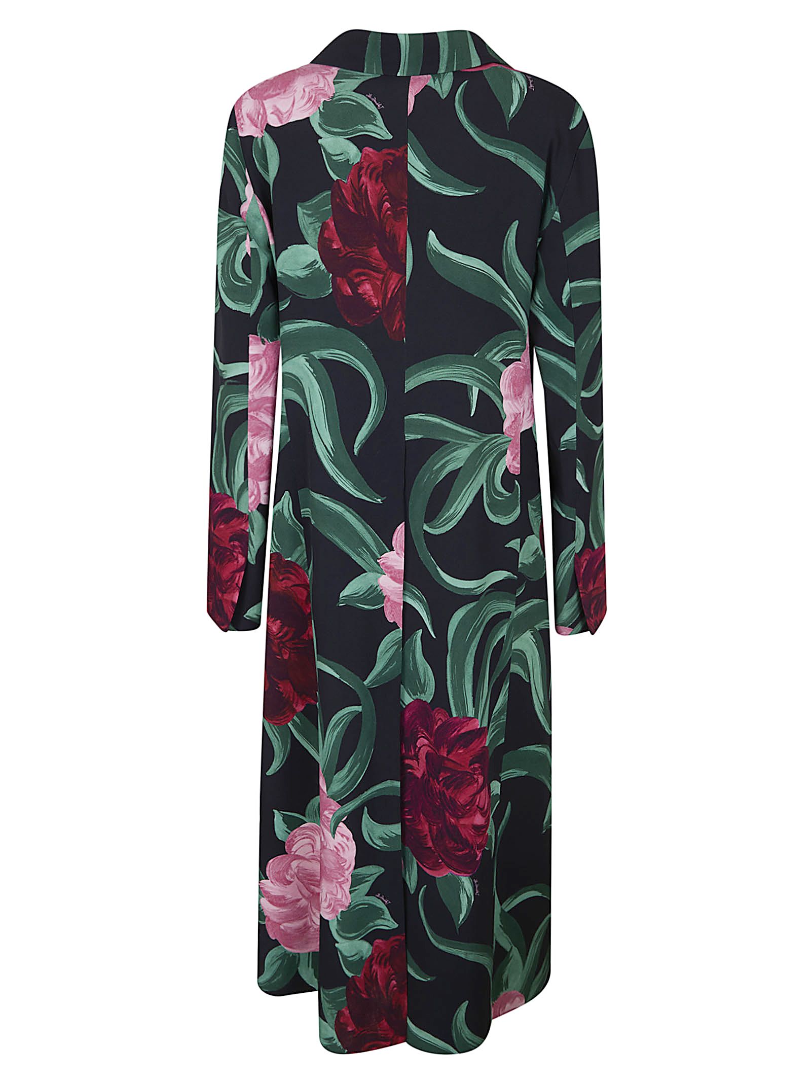 Duster Coat in sablé satin di LA DOUBLEJ.Design aderente alle spalle e alle braccia con ampi revers; lunghezza intera; doppiopetto; tasche a toppa; collo tipo blazer.Caratterizzato da stampa Peony.