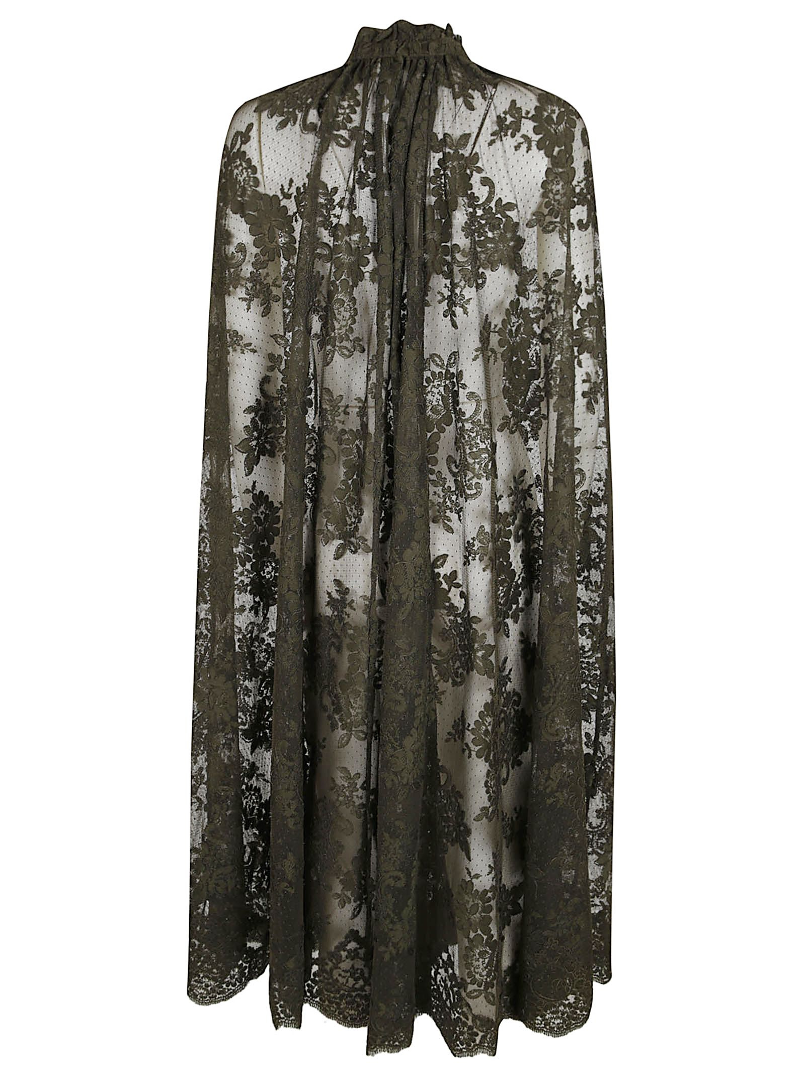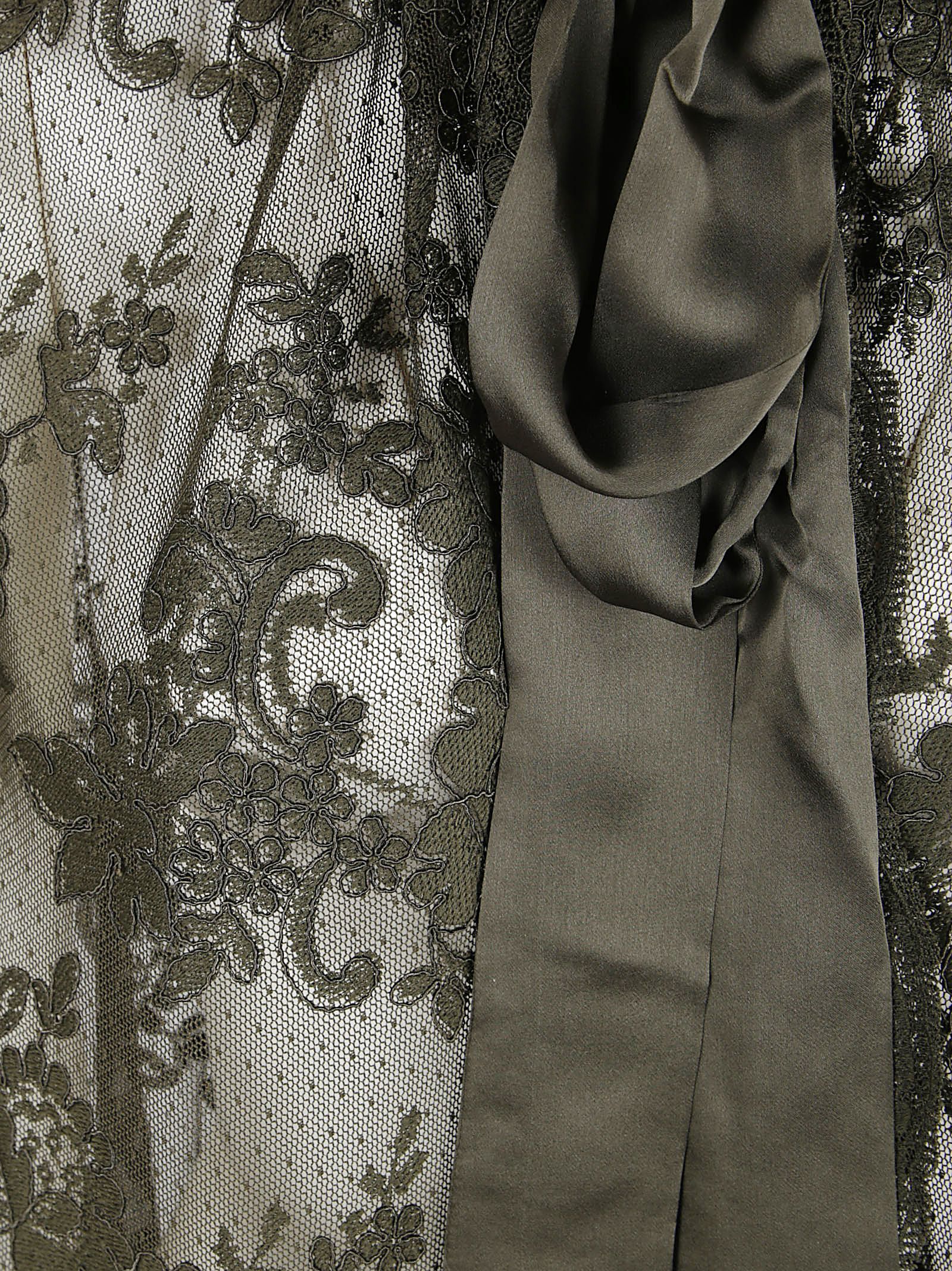 verde oliva pizzo floreale collo alto orlo ondulato maniche lunghe