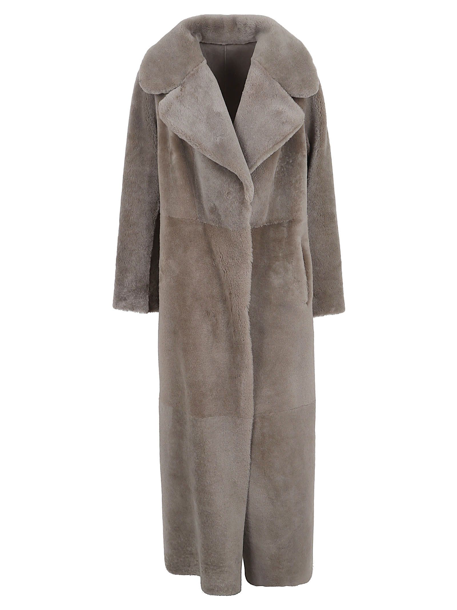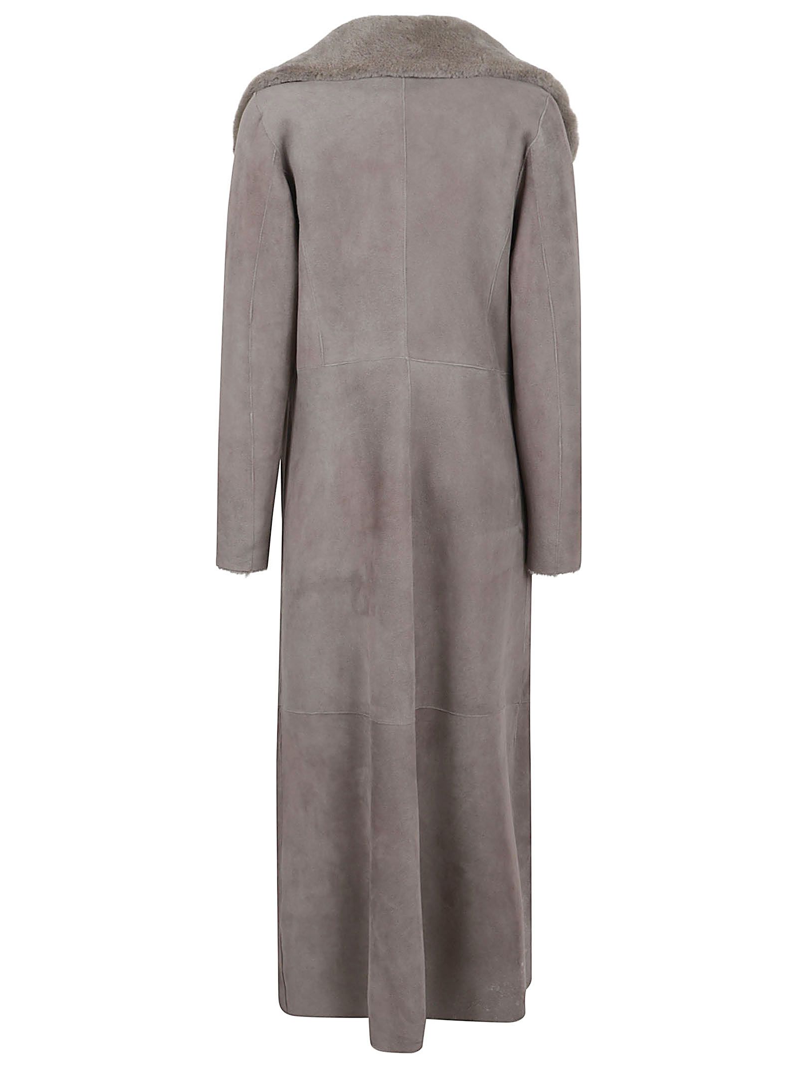 collo a scialle in montone grigio design a pannelli maniche lunghe chiusura frontale