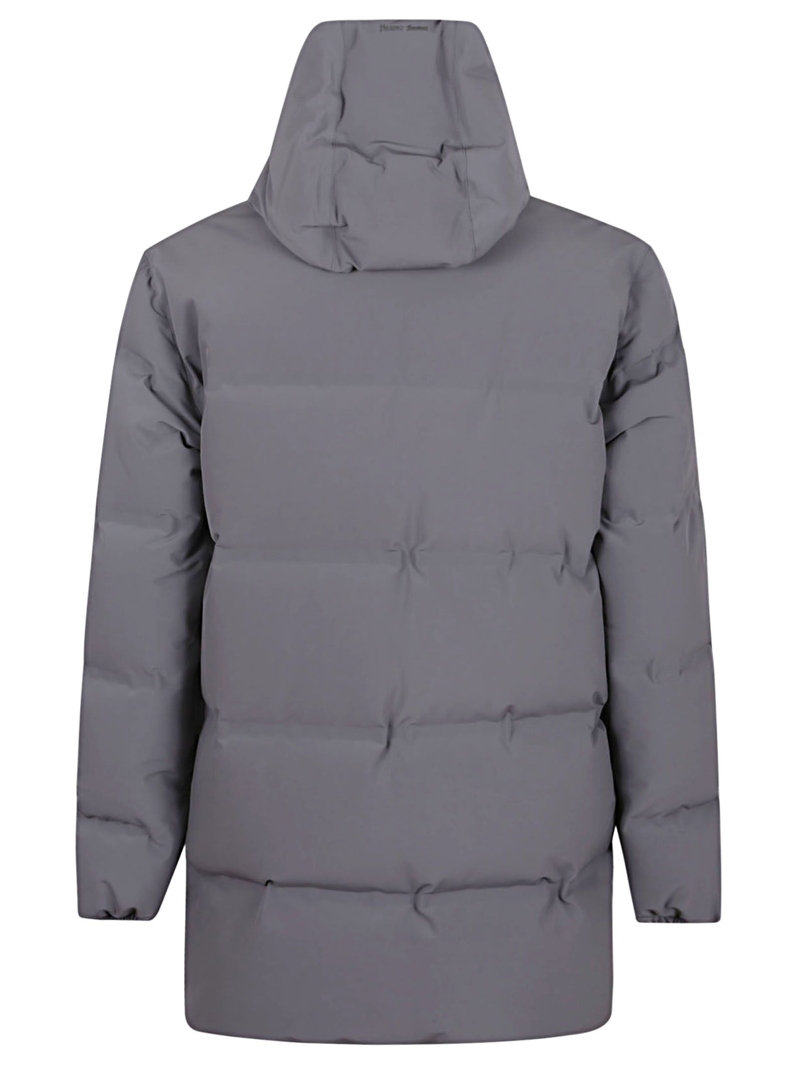 grigio imbottito in piuma d`oca design classico cappuccio maniche lunghe chiusura con zip frontale lunghezza media