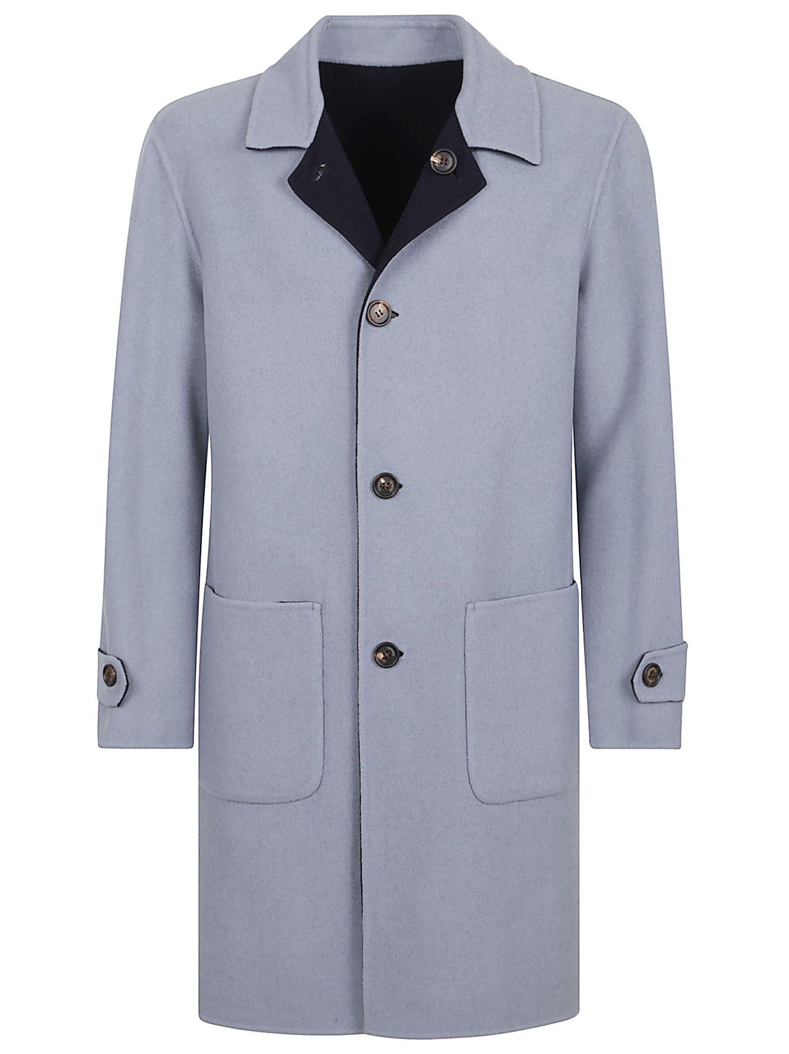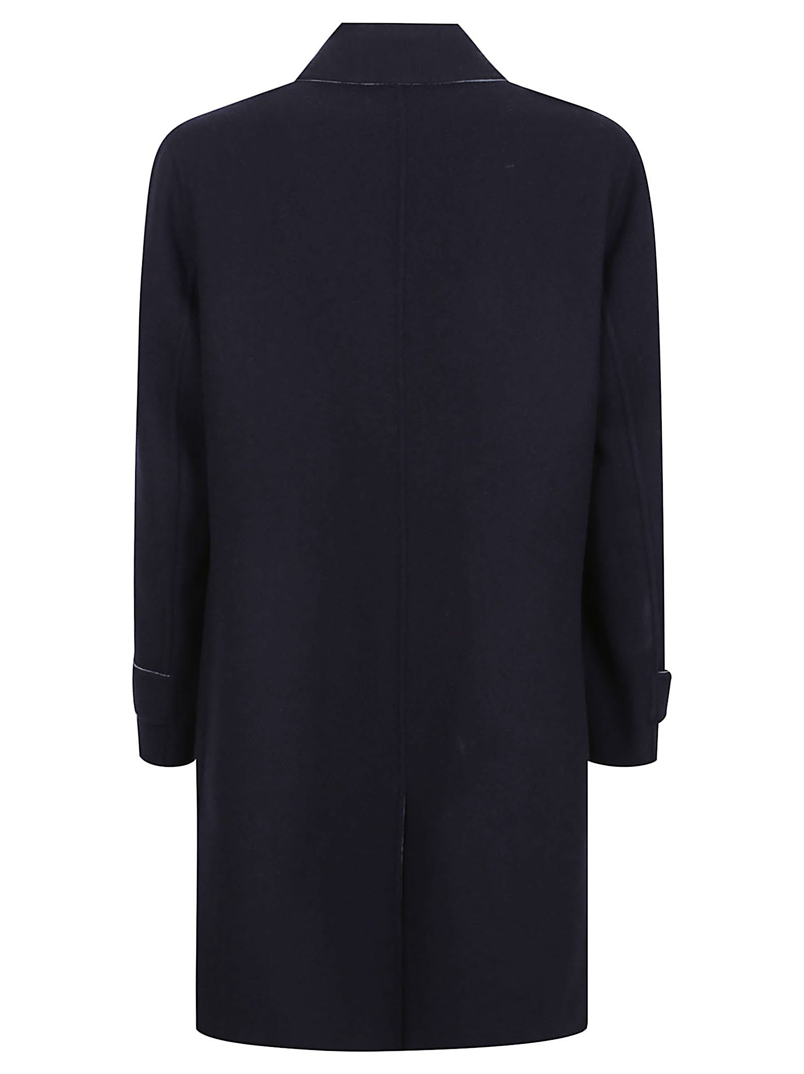 Giaccone blue navy chiusura frontale con bottoni tasche applicate maniche lunghe polsini con bottoni