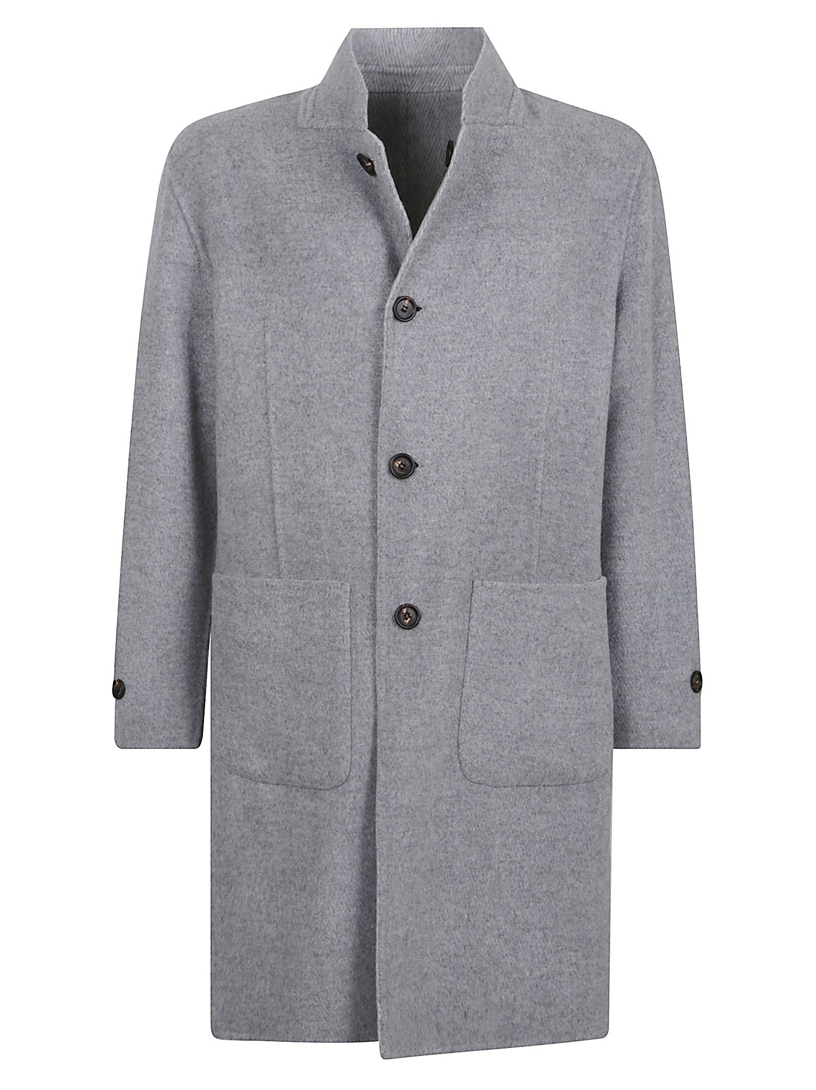 giaccone in cachemire e lana grigio chiaromotivo a zigzagchiusura con bottoni