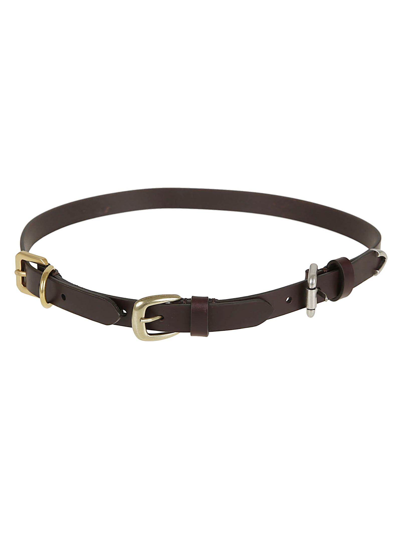 "costruzione in pelle marronechiusura a triplo bottonefibbia doratafibbia argentata"