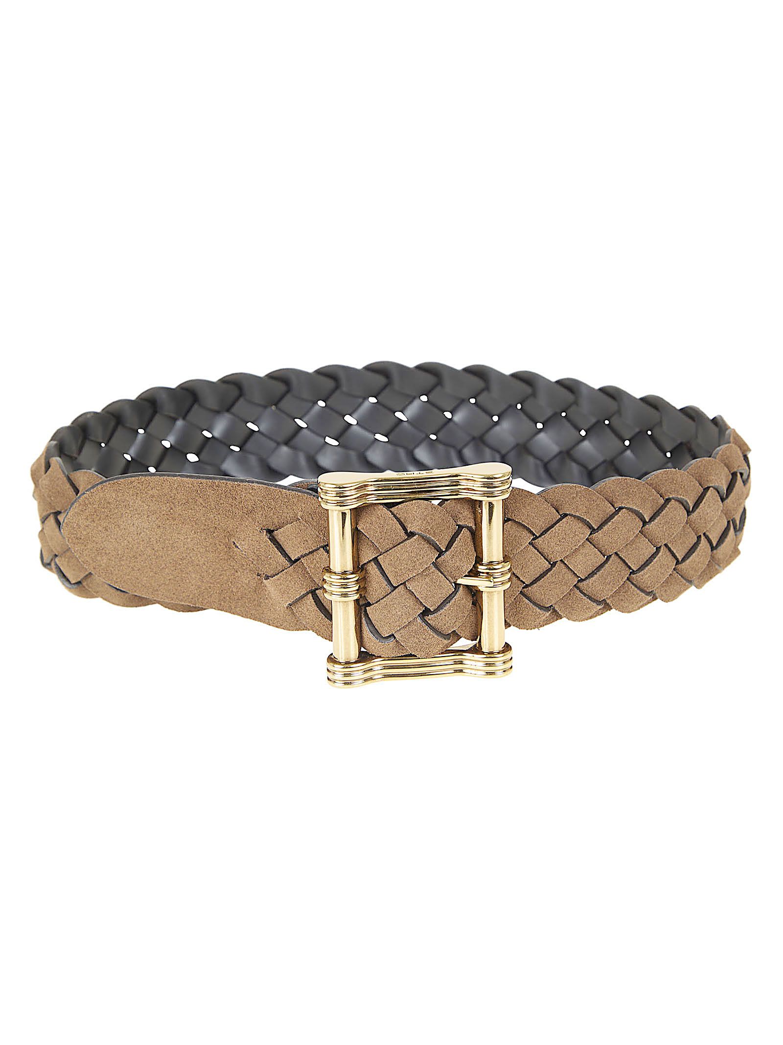 Cintura reversibile con un lato realizzato in morbida pelle tinta unita e uno in suede con lavorazione intrecciata di ETRO.Maxi fibbia dorata ad ardiglione con rigature. H: 6cm