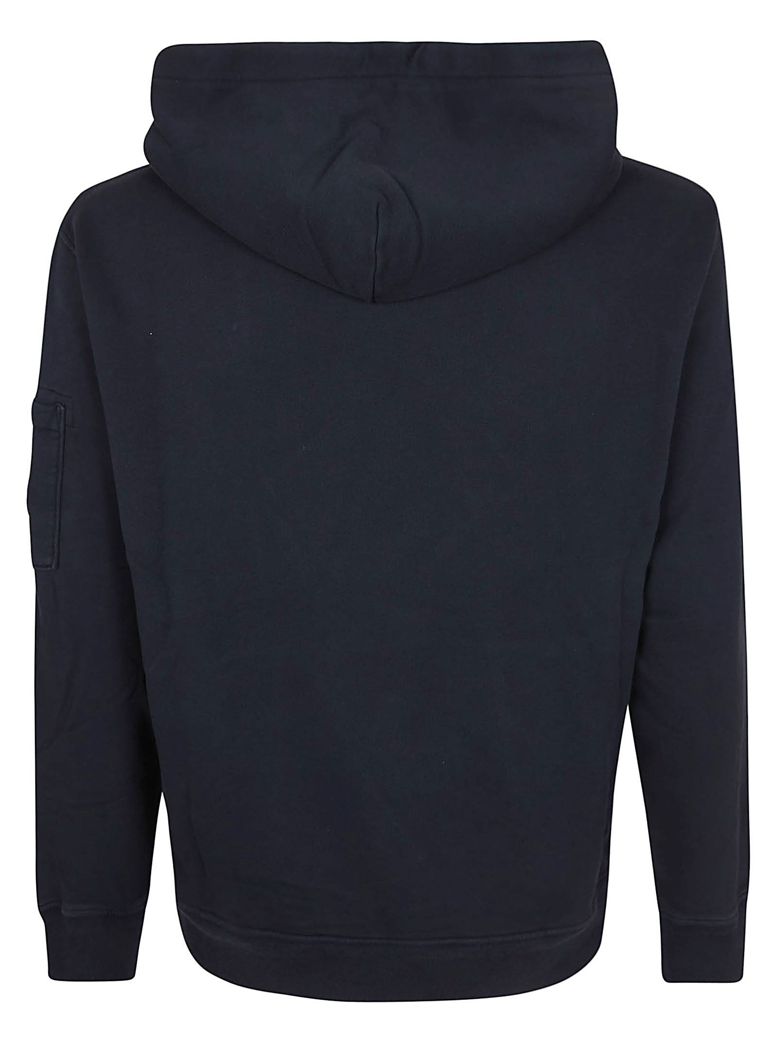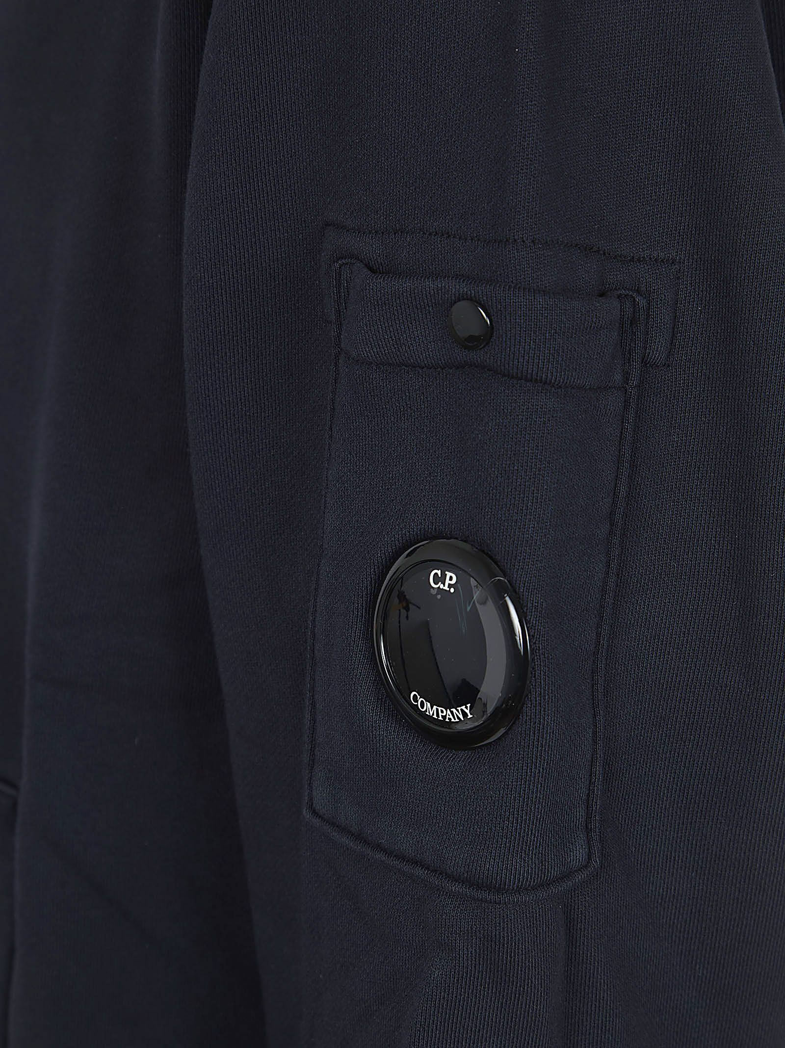 Felpa in puro cotone di CP COMPANY.Cappuccio con coulisse; maniche lunghe; fondo e polsini con elastico a costine; tasca a marsupio frontale applicata. Caratterizzata da taschino sulla manica con iconica Lente di C.P. Company.