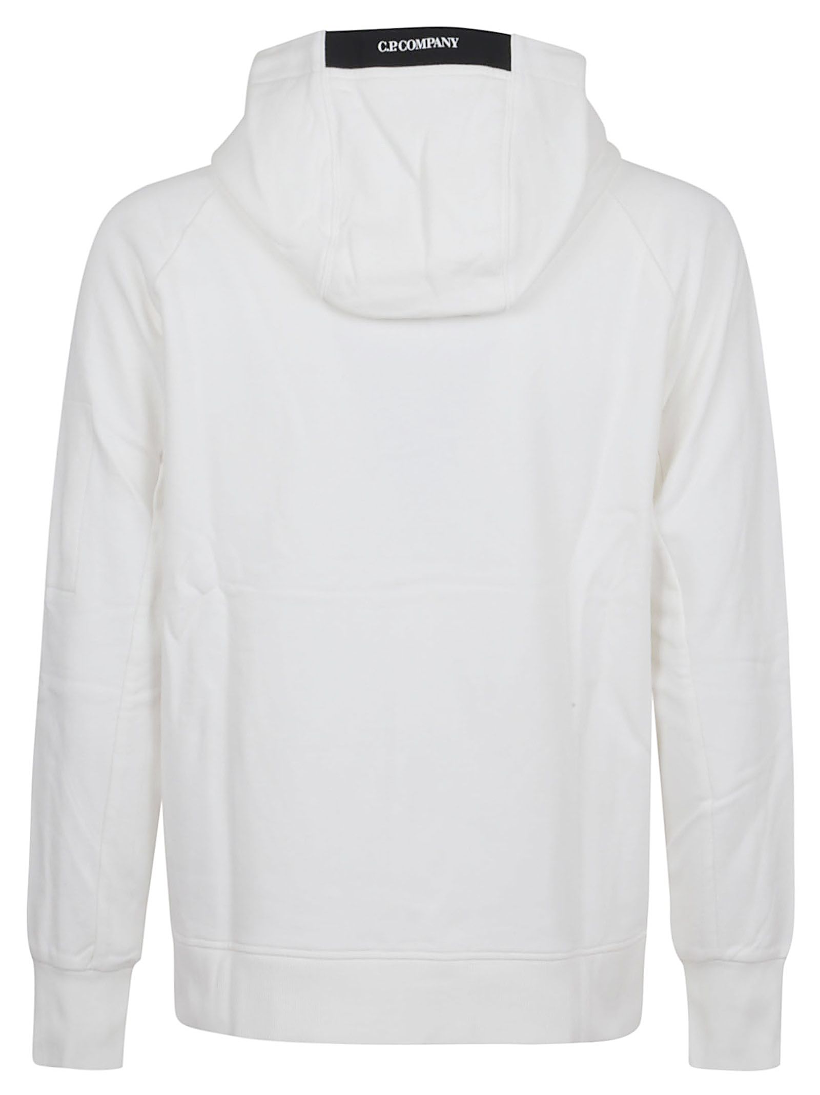 Felpa in fleece di cotone smerigliato con struttura a trama diagonale di CP COMPANY.Chiusura con zip frontale; cappuccio regolabile; tasche laterali zip; polsini e orlo a costine; design vestibilità regolare.Caratterizzata da taschino con Lente.
