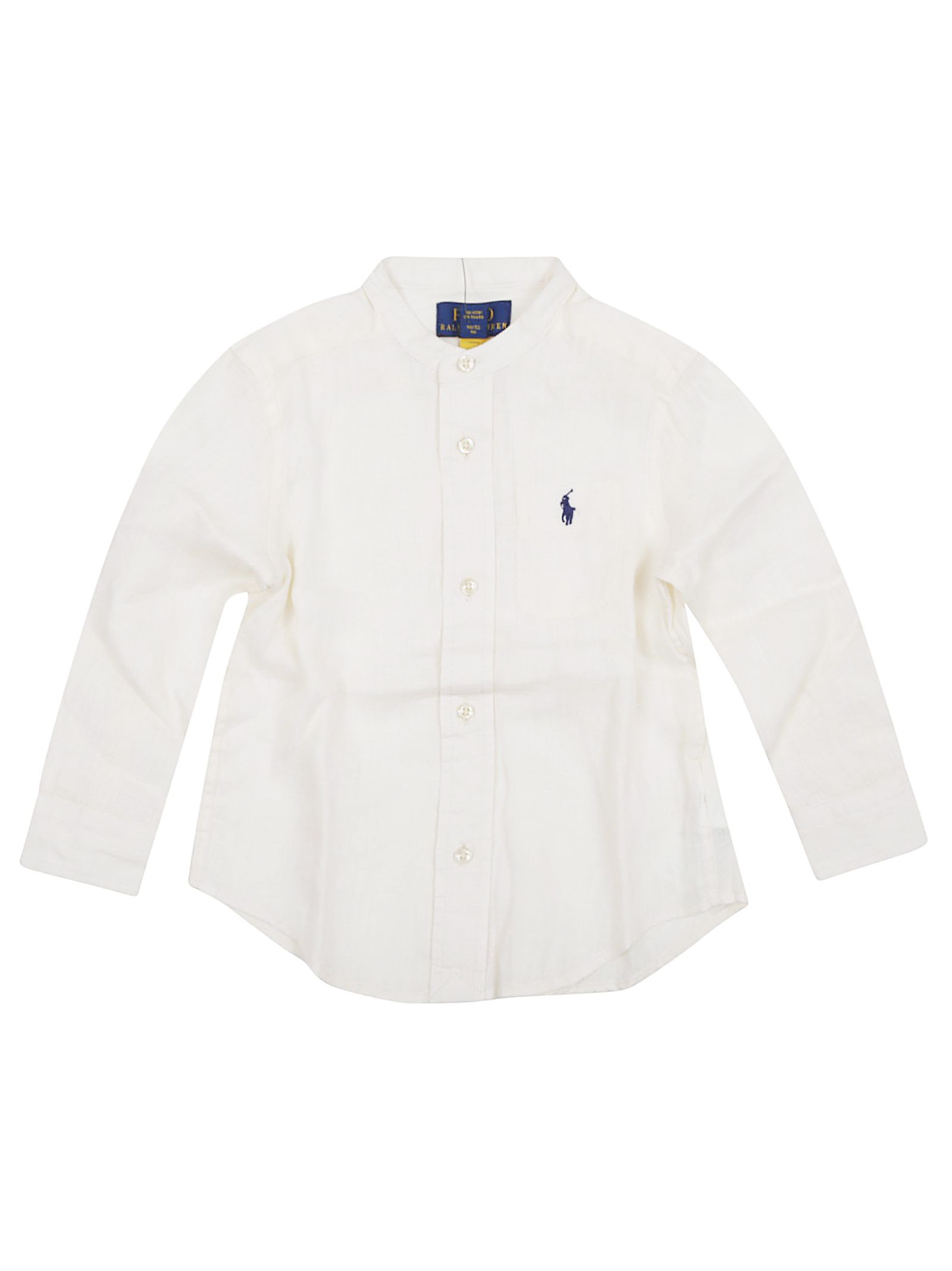 Camicia in lino di RALPH LAUREN KIDS.Collo a fascetta; maniche lunghe con polsini con bottoni; tasca applicata sul lato sinistro del torace; chiusura cannoncino con bottoni.Caratterizzata da pony ricamato sul lato sinistro del torace.