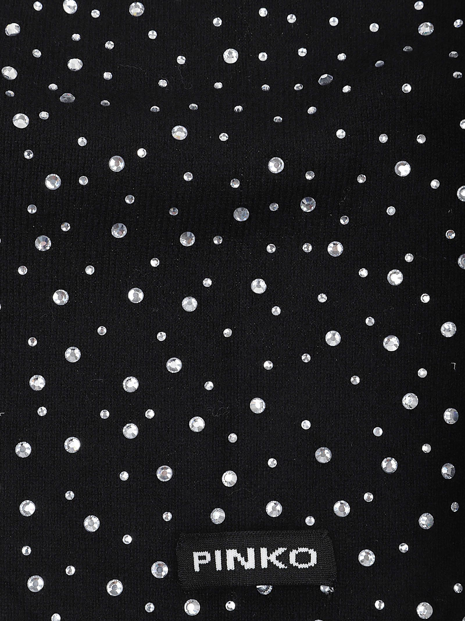 Sciarpa di forma triangolare in pura lana vergine lavorata a maglia rasata di PINKO.Impreziosita da scintillanti strass su un lato e etichetta con il logo lettering del brand sull`altro lato.