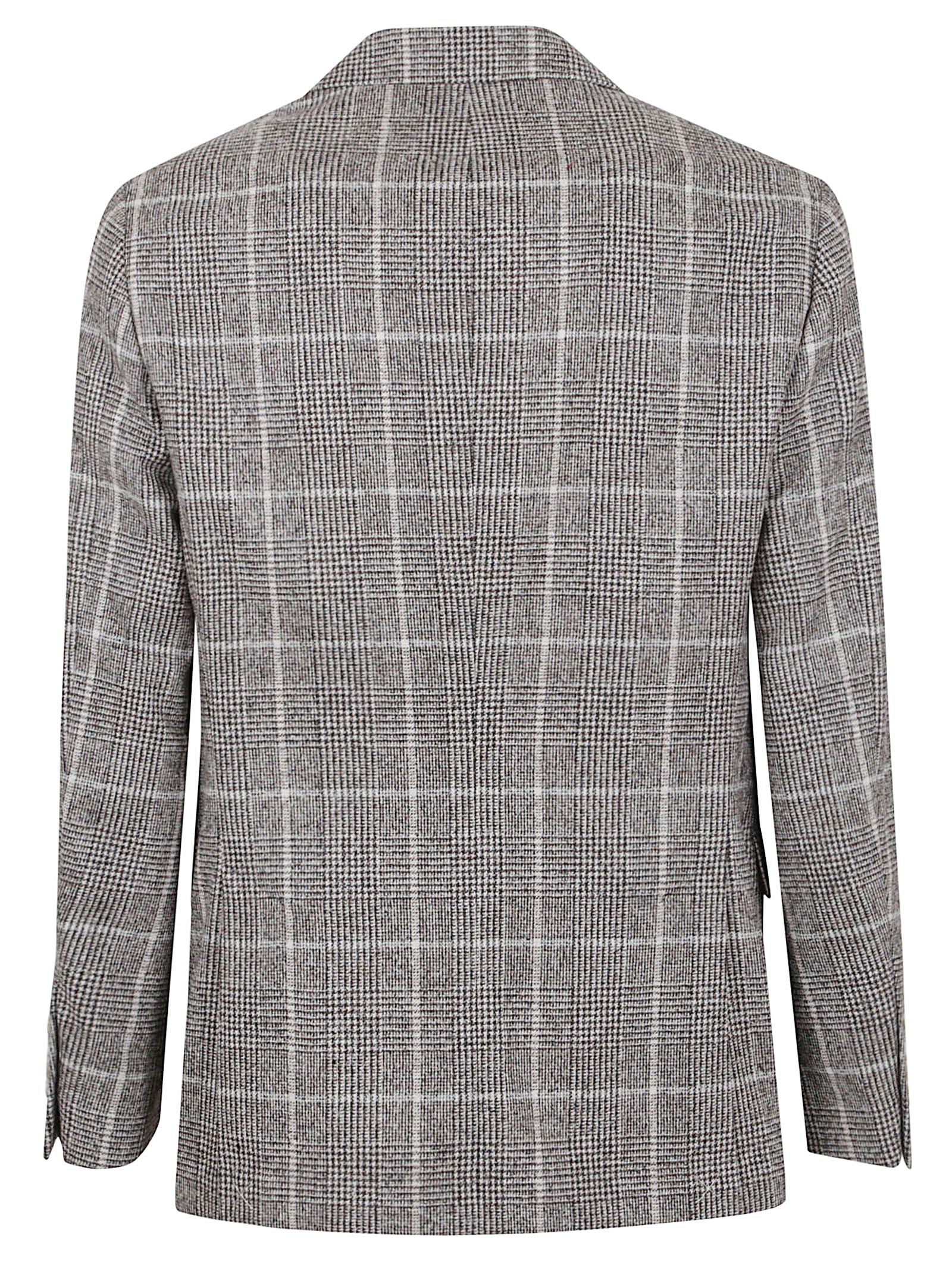 Giacca decostruita misto leggero di lana, alpaca e seta motivo Principe di Galles di BRUNELLO CUCINELLI.Chiusura con tre bottoni in metallo; rever a lancia grande; polsini con quattro bottoni in corno e asole apribili; tasche a filetto con patta, ticket pocket, taschino su petto e due tasche interne con chiusura a bottone e tasca portapenna; spacco sul retro. Design dalla spalla asciutta e al tempo stesso importante valorizza la fisicità maschile, senza necessità di ricorrere all`imbottitura.
