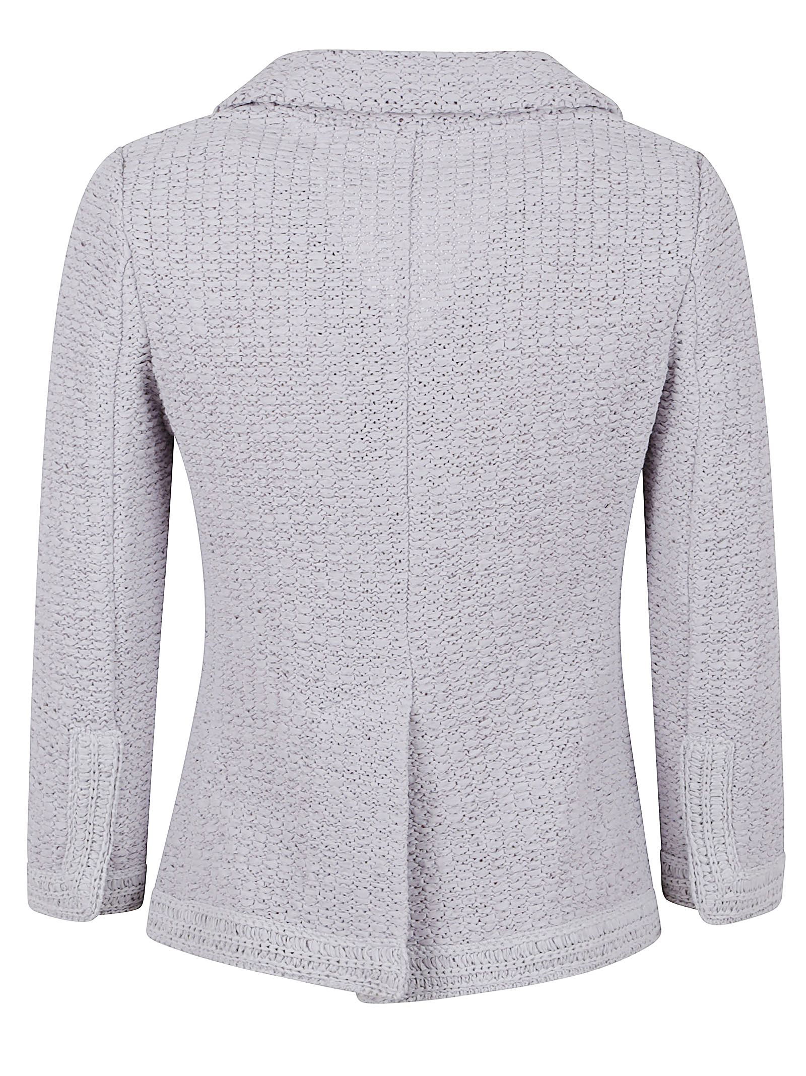 giacca in maglia artigianale corta in vita e sciancrata ,molto leggera con tasche applicate e bottoni a pressione