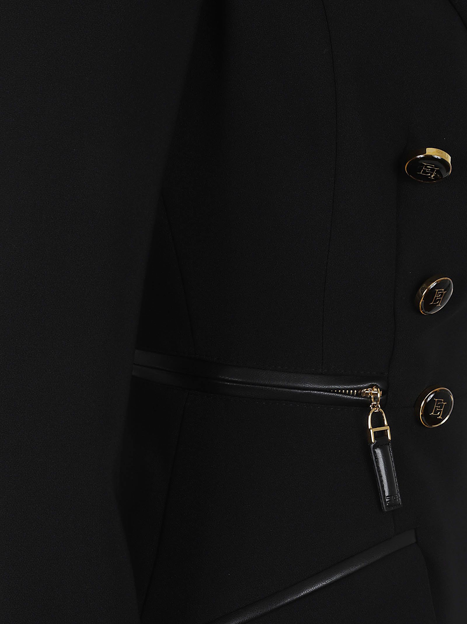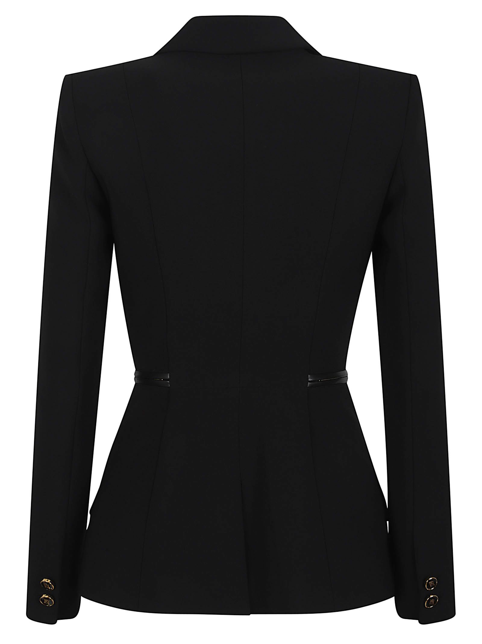 Giacca in crêpe leggero di ELISABETTA FRANCHI.Design doppiopetto; rever a lancia; spalle strutturate; design vestibilità slim. Caratterizzata da bottoni smaltati con Logo e dettagli zip che definiscono il punto vita.