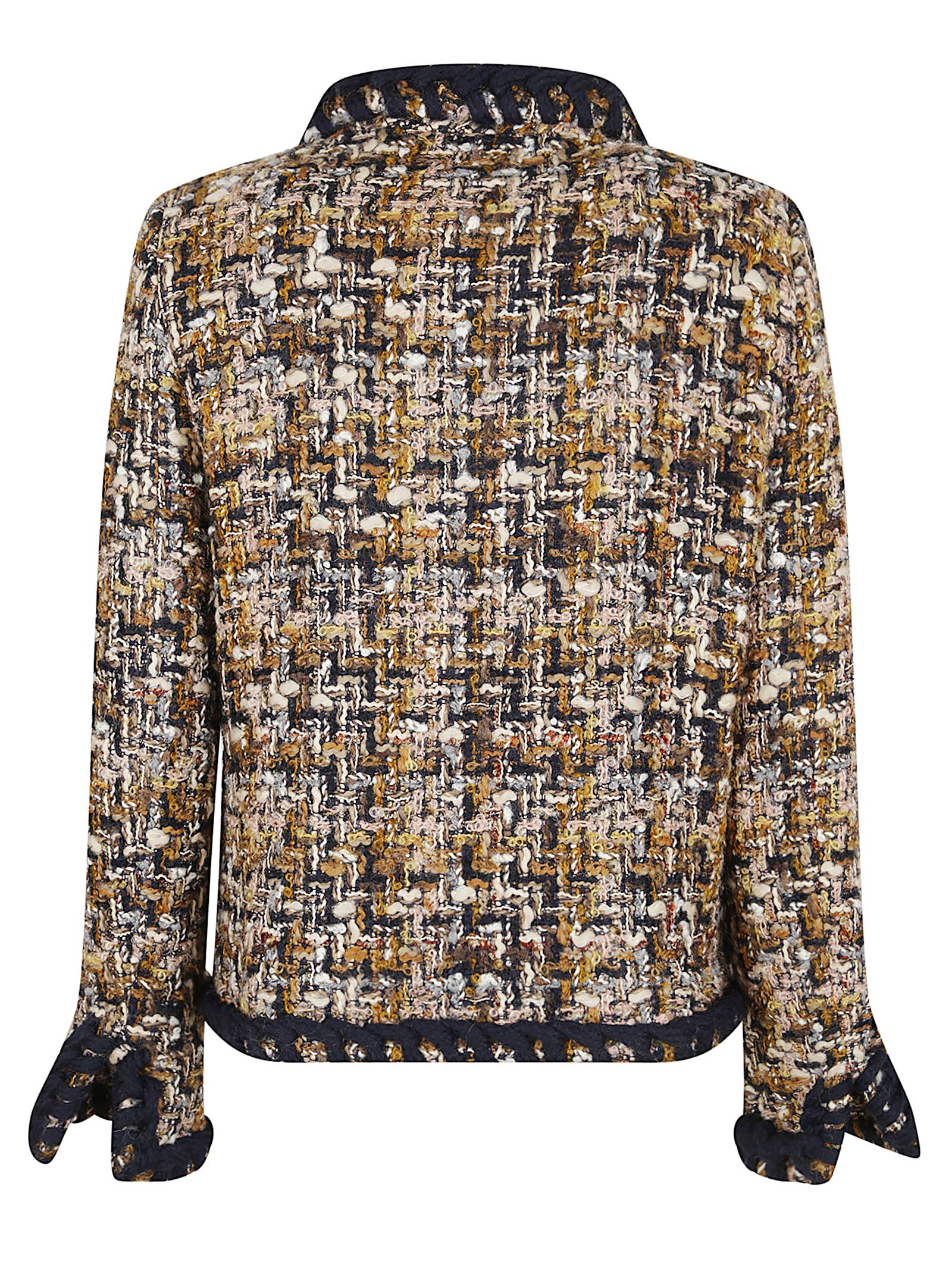 BLU E GIALLO multicolore in tweed chiusura frontale con bottoni maniche lunghe