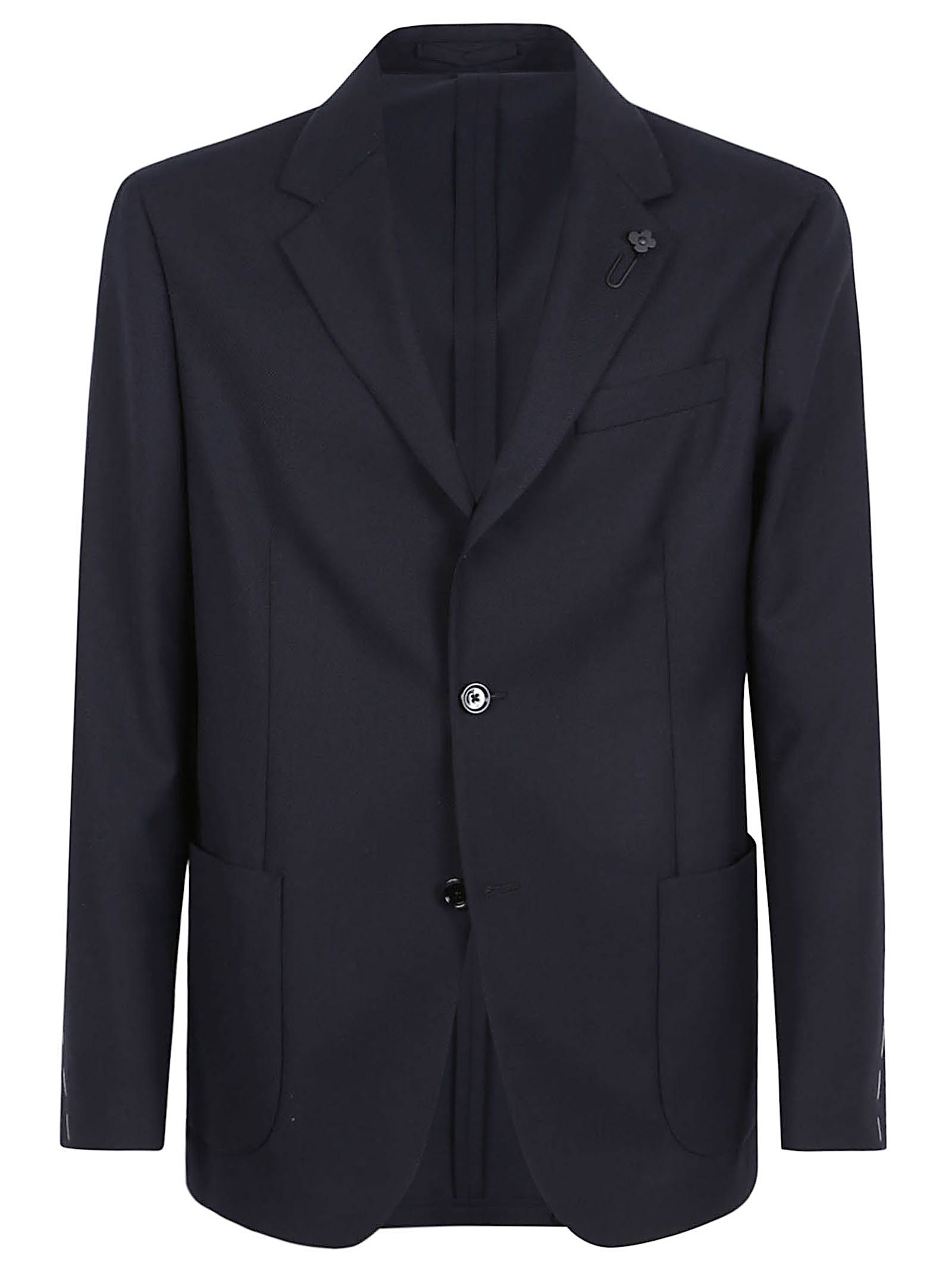 Giacca EASY WEAR DROP di LARDINI.Revers a punta; chiusura frontale con due bottoni a contrasto; due tasche applicate e una a filetto.