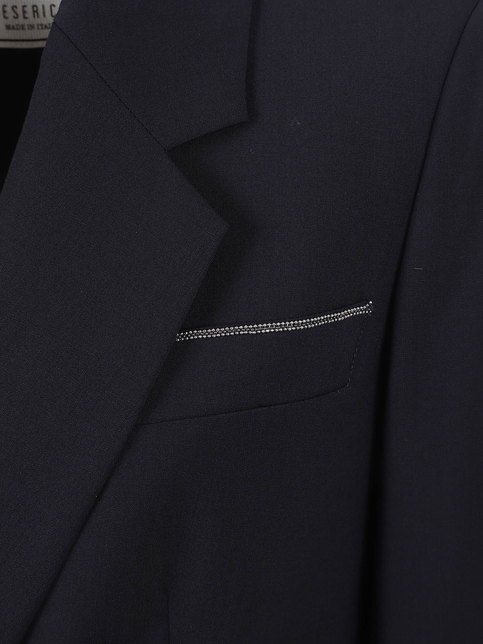 Giacca in lana di PESERICO.Design doppiopetto; revers a punta; due tasche con patta e una tasca a filetto; design vestibilità regolare. Caratterizzata dall`iconico Punto Luce sul taschino.