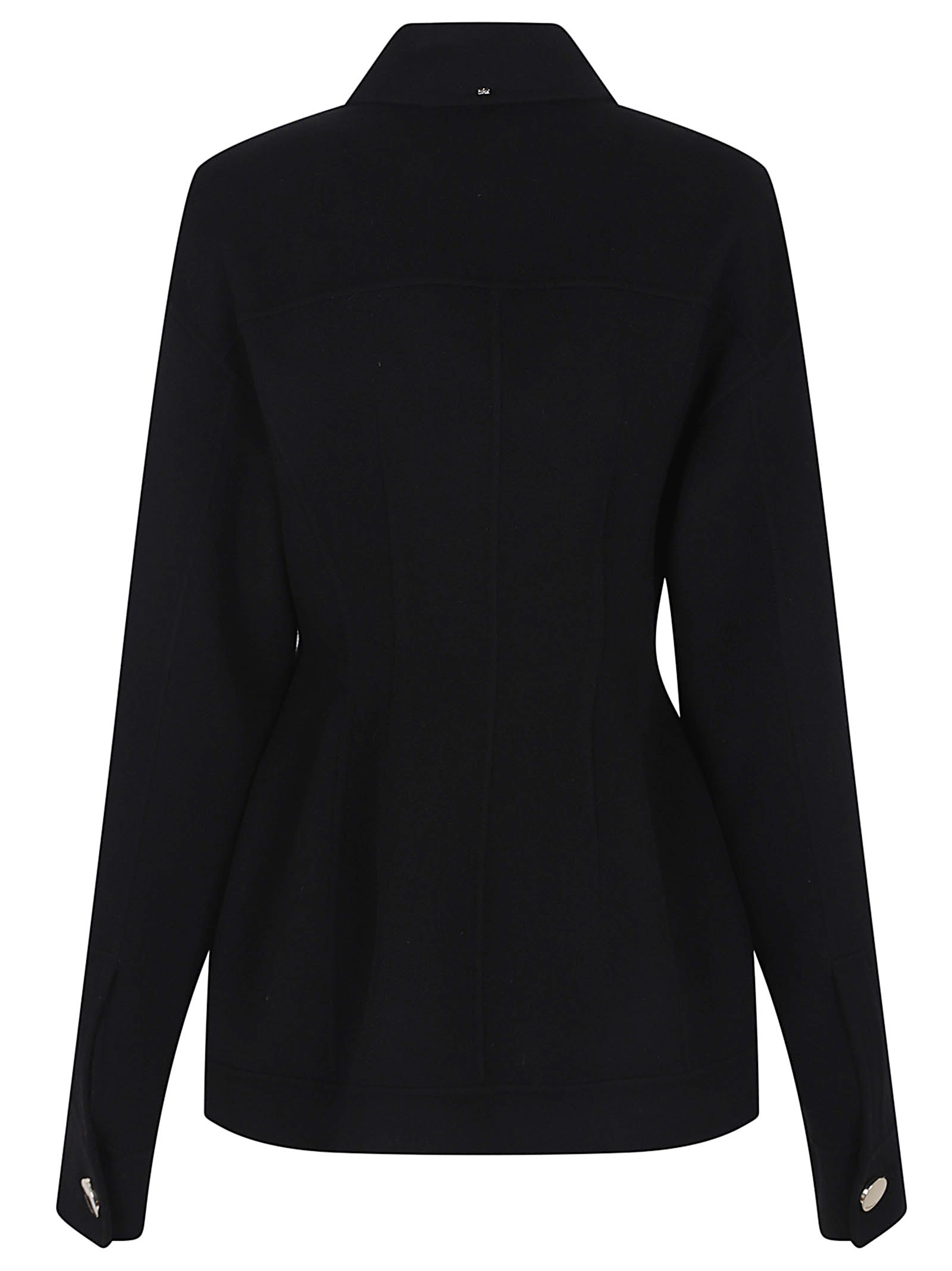 Caban in drap double di pura lana di SPORT MAXMARA.Chiusura con grandi bottoni metallici; collo a camicia; design fit aderente sul busto e ampio sulle maniche e spalla scesa con carré sia davanti che sul retro.Caratterizzata da pince profonde e bottoni a specchio con Logo inciso.