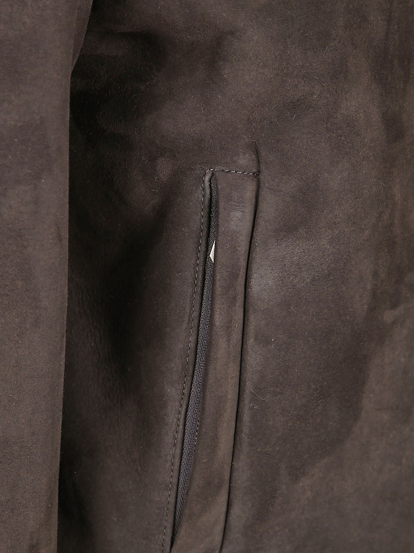 giubbotto marrone chiusura con zip collo alto orlo a costine polsini a costine tasche laterali
