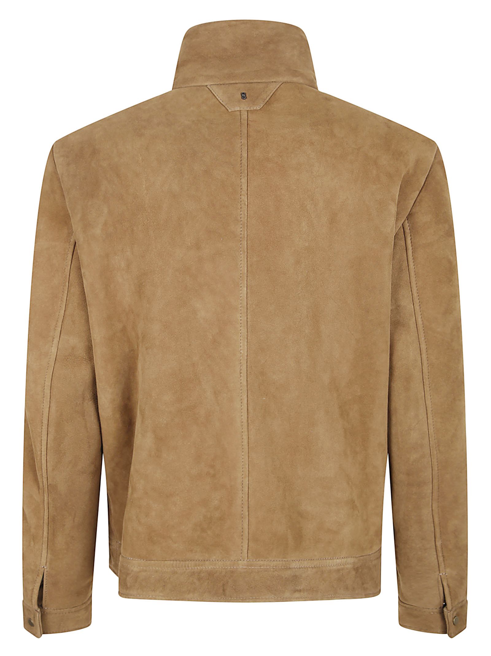 giacca cammello in camoscio chiusura con zip tasche a pattina collo alto