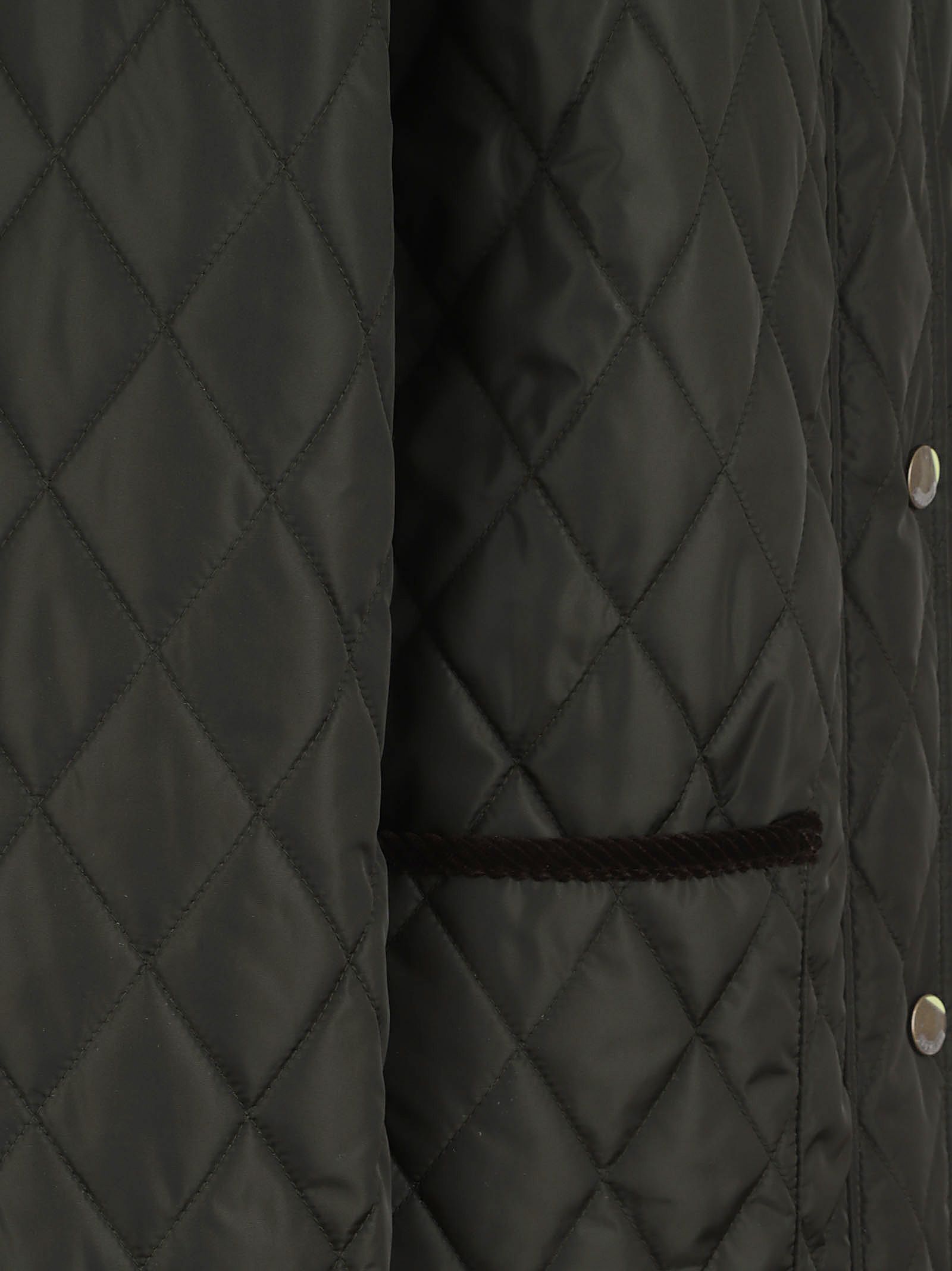 colletto in velluto a coste verde scuro chiusura con bottoni a pressione due tasche applicate frontali motivo trapuntato a rombi