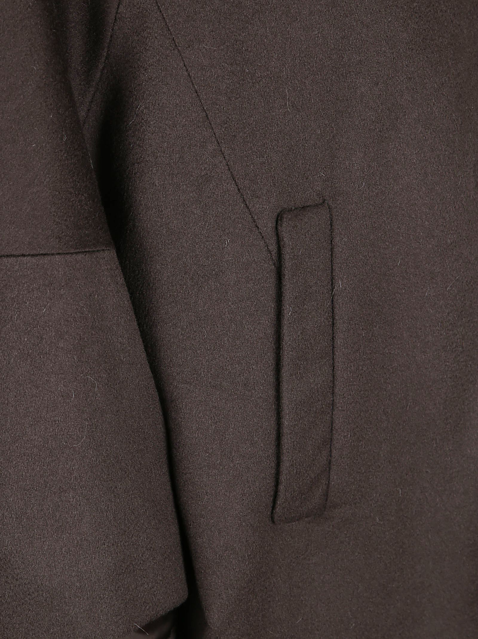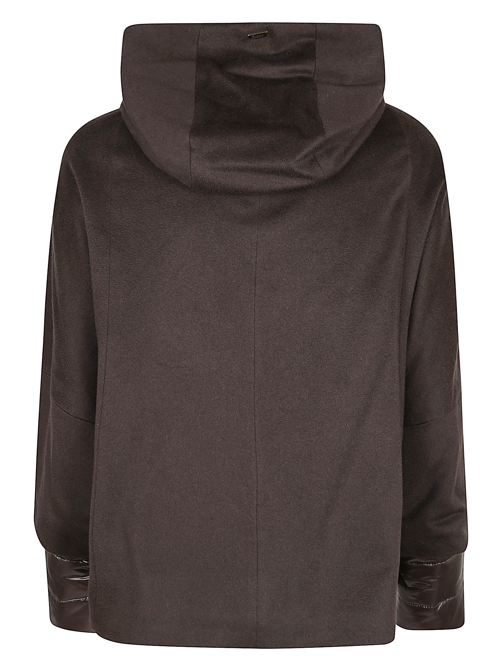 Cappa in puro cashmere di HERNO.Cappuccio accogliente; collo alto; maniche rifinite nell`iconico Nylon Ultralight Herno, imbottitura in ovatta; design vestibilità relaxed; tasche laterali; chiusura con bottoni a pressione.Caratterizzato da Logo Herno in metallo sul retro.