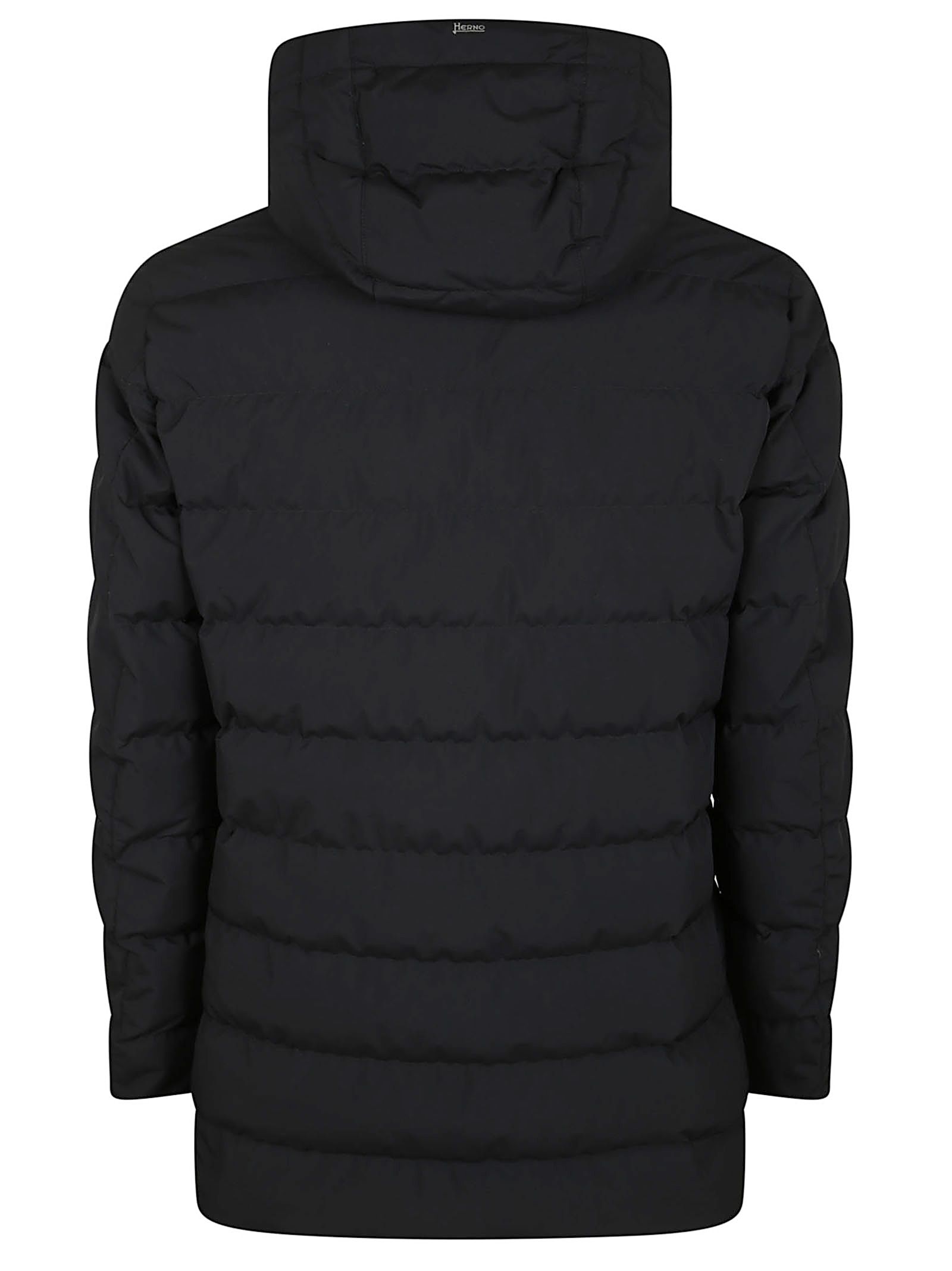 Giacca in microfibra di poliestere con imbottitura in piuma di HERNO.Cappuccio rimovibile; chiusura con zip a doppio cursore; tasche laterali; design lungo e trapuntatura a righe.Caratterizzata da Logo Herno sul retro.