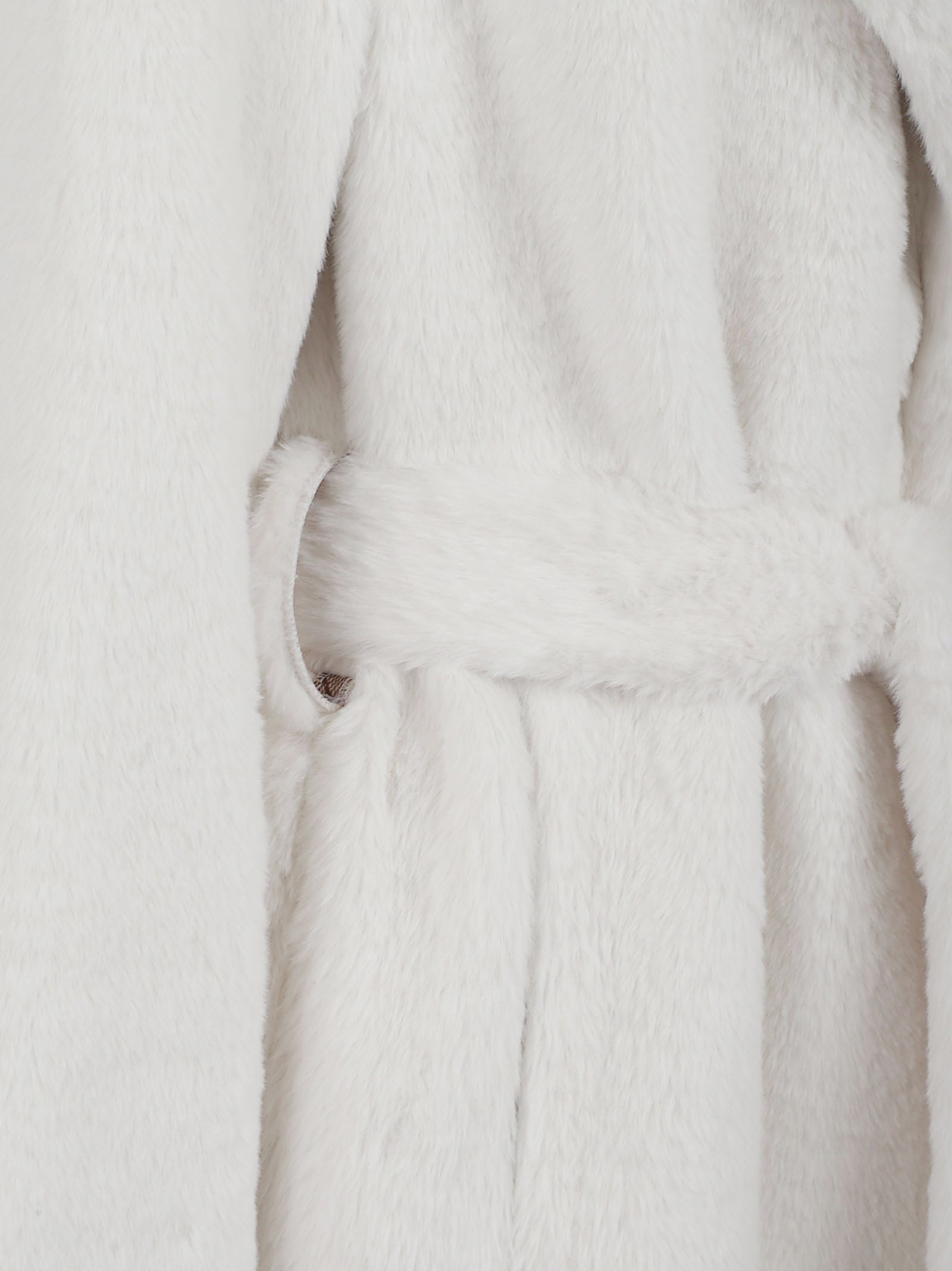 Cappotto in pelliccia sintetica effetto castoro di HERNO.Collo a revers; chiusura con cintura coordinata; tasche laterali a filetto; interno foderato.