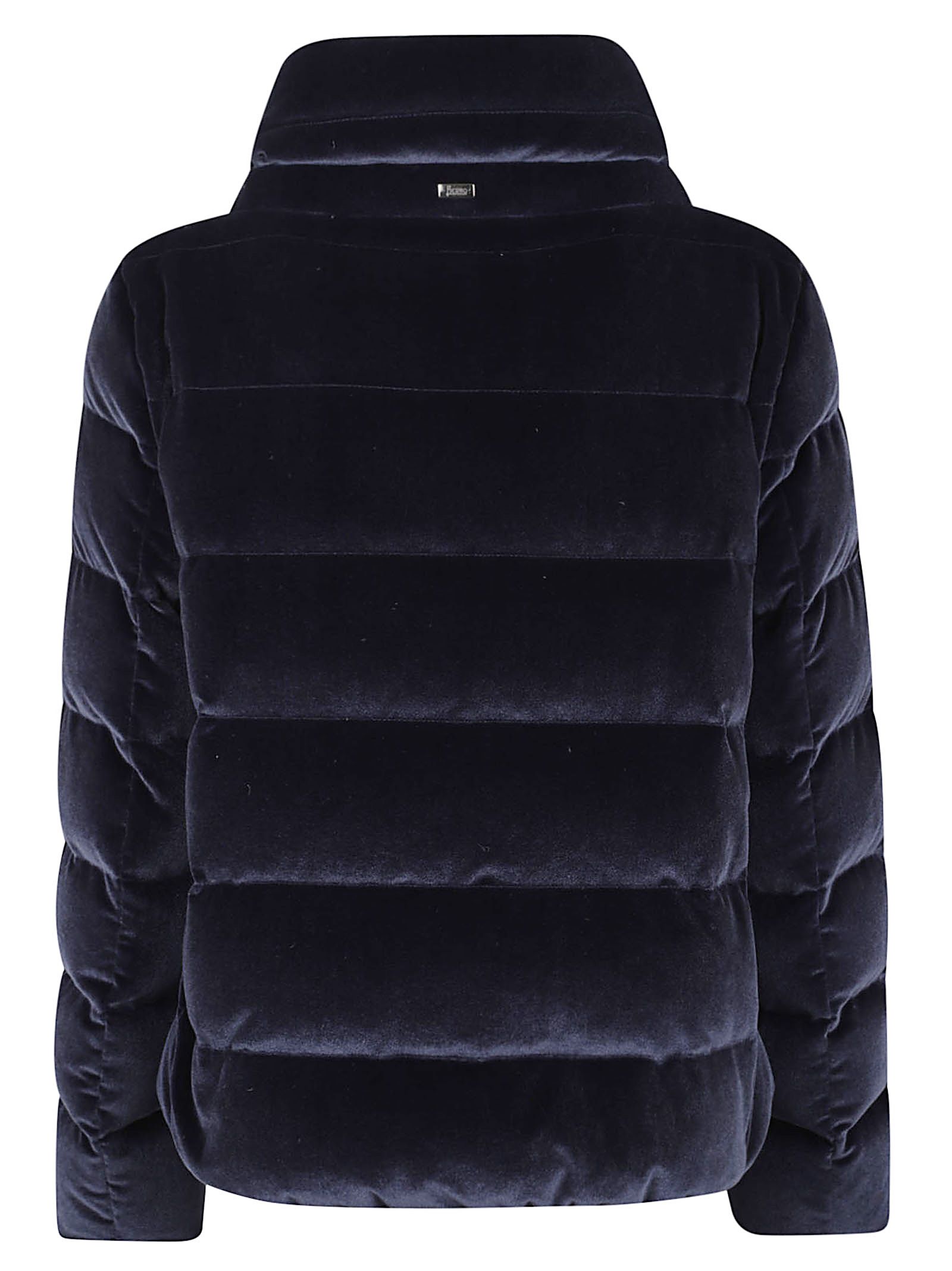 Giacca in velluto liscio dalla mano morbida e lucida di HERNO.Collo alto; tasche laterali; chiusura nascosta con bottoni a pressione; design vestibilità regolare. Caratterizzata da coulisse in gros grain e Logo Herno in metallo sul retro.