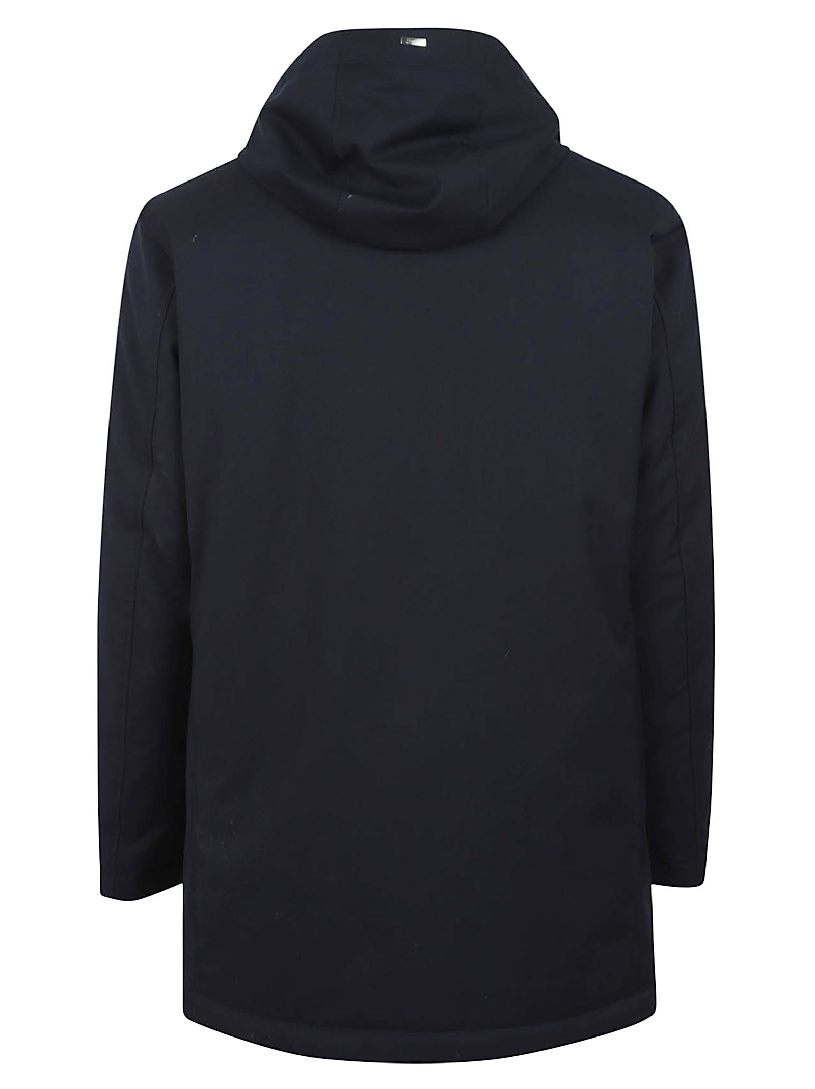 Giaccone in tessuto tecnico trattato rifinito con una membrana super light traspirante e antivento di HERNO.Collo alto rifinito in maglia a coste; cappuccio con coulisse; chiusura coperta con zip a doppio cursore e bottoni a pressione; tasche a filetto; fodera nell`iconico Nylon Ultralight, Nylon giapponese 20 denari e una piuma pregiata 90/10 e imbottitura in piuma d`oca; design vestibilità regolare.Caratterizzato da Logo in metallo sul retro.