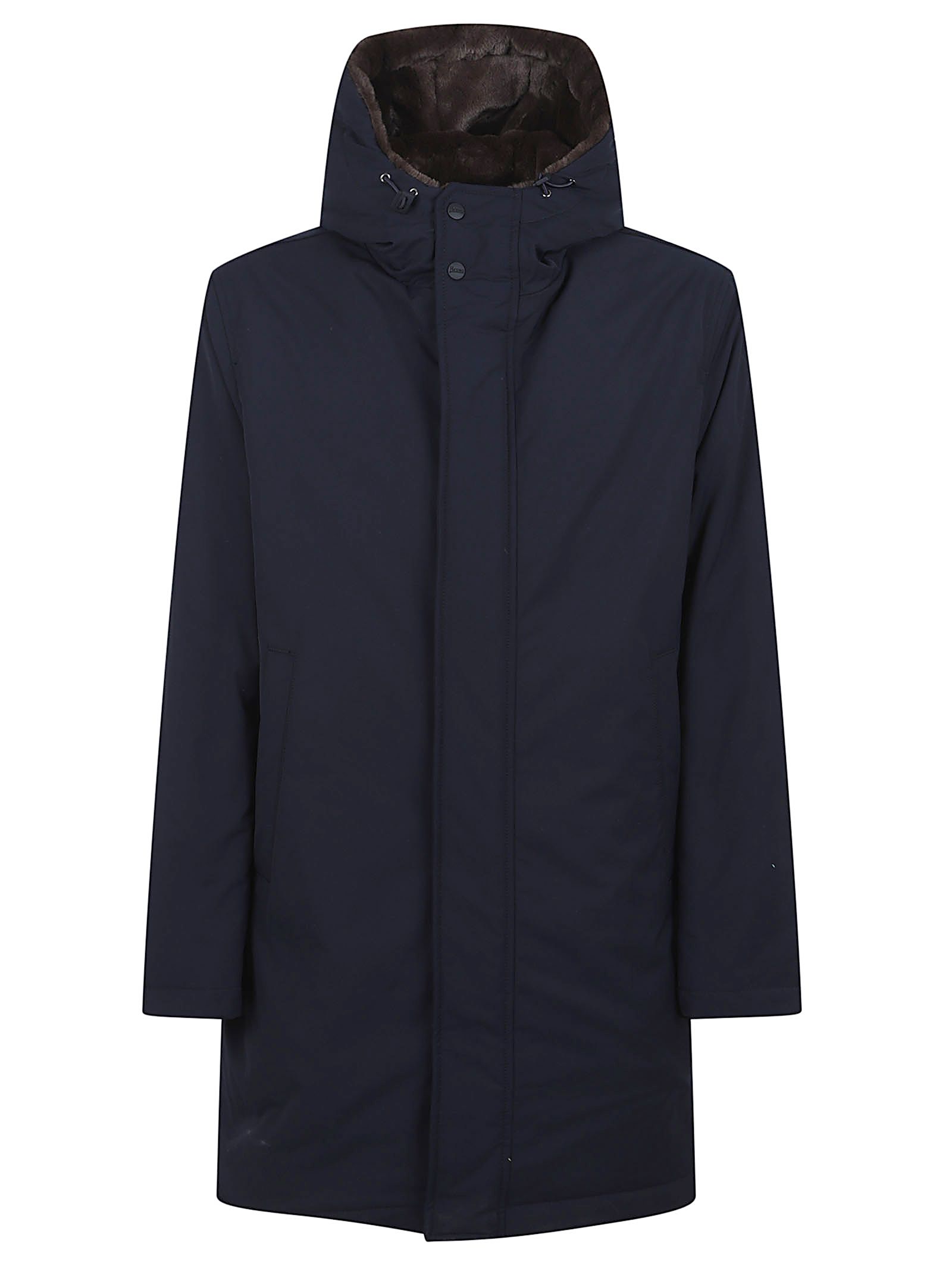 Cappa realizzatanell`iconico Nylon Ultralight BY HERNO.Tessuto che combina una buona resistenza all’acqua con un effetto tattile particolarmente lussuoso simile alla seta.Chiusura con bottoni a pressione; maniche lunghe; tasche a filetto; collo alto.Dettaglio coulisse in gros grain.Imbottitura in piuma.