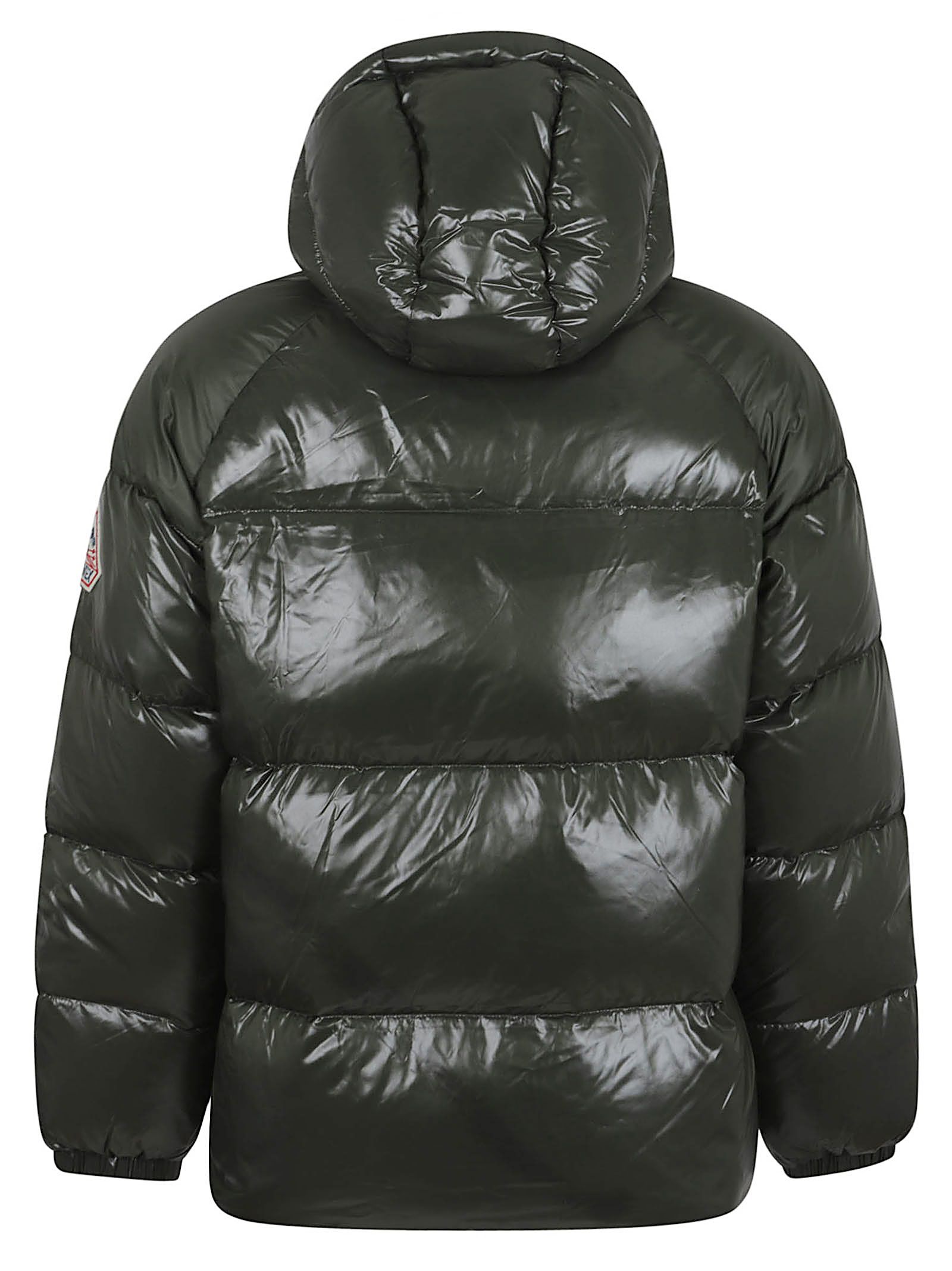 piumino con imbottitura in piume d`oca trapuntato collo alto cappuccio classico