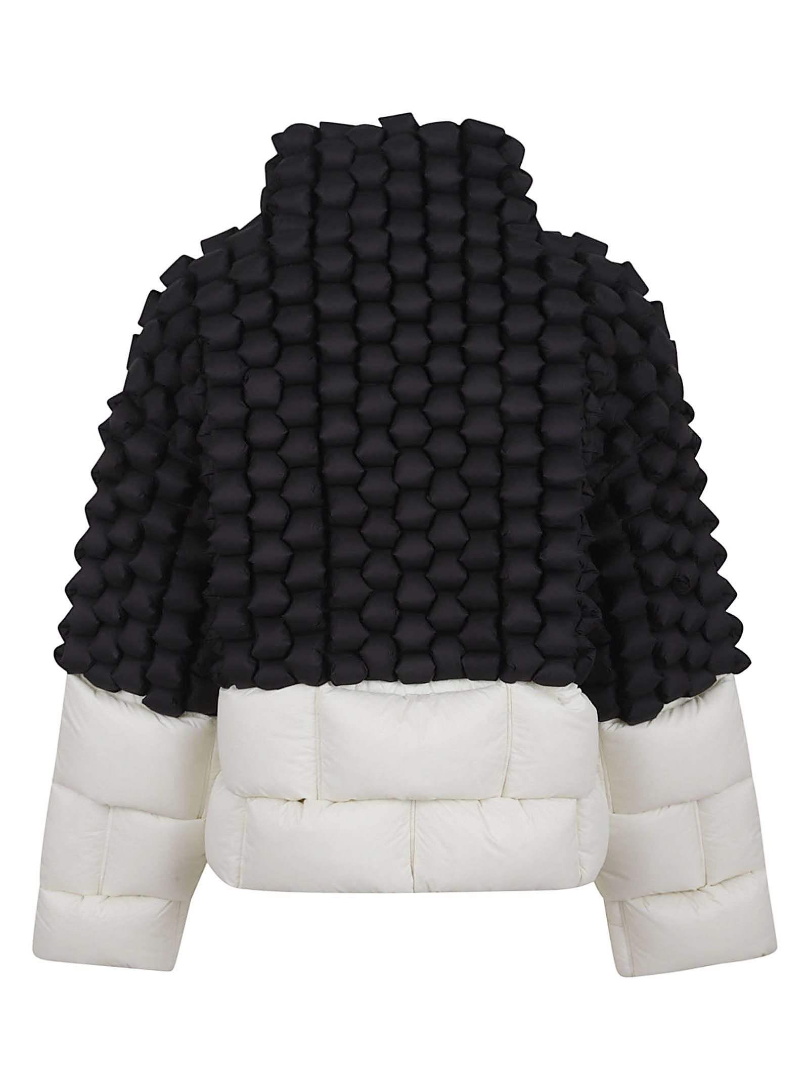 Imbottitura con piumino d`oca bianco/nero, design trapuntato a pannelli geometrici, chiusura frontale con zip bidirezionale, colletto alto, maniche lunghe, due tasche frontali con patta, fodera completa, tasca interna senza chiusura, orlo dritto. Acquistando questo articolo unisex, tieni presente che le taglie sono standard da uomo.