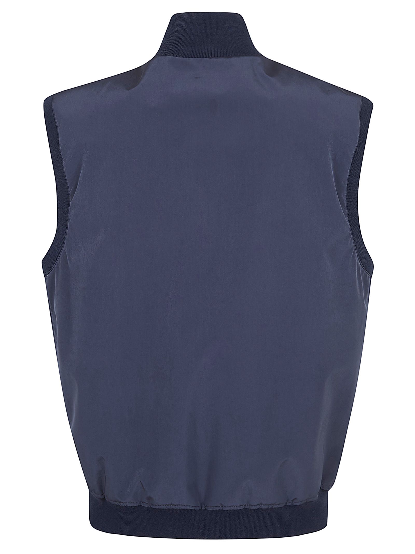 Gilet imbottito in nylon di BRUNELLO CUCINELLI.Fluidità del tessuto accompagnata da una membrana interna e dell`imbottitura leggera in Thermore®, fodera in nylon idrorepellente; chiusura con zip e doppio cursore; colletto in maglia a costina come fondo; tasche basse con bottone automatico e due tasche interne con chiusura a bottone e tasca portapenna; design vestibilità regolare e confortevole.