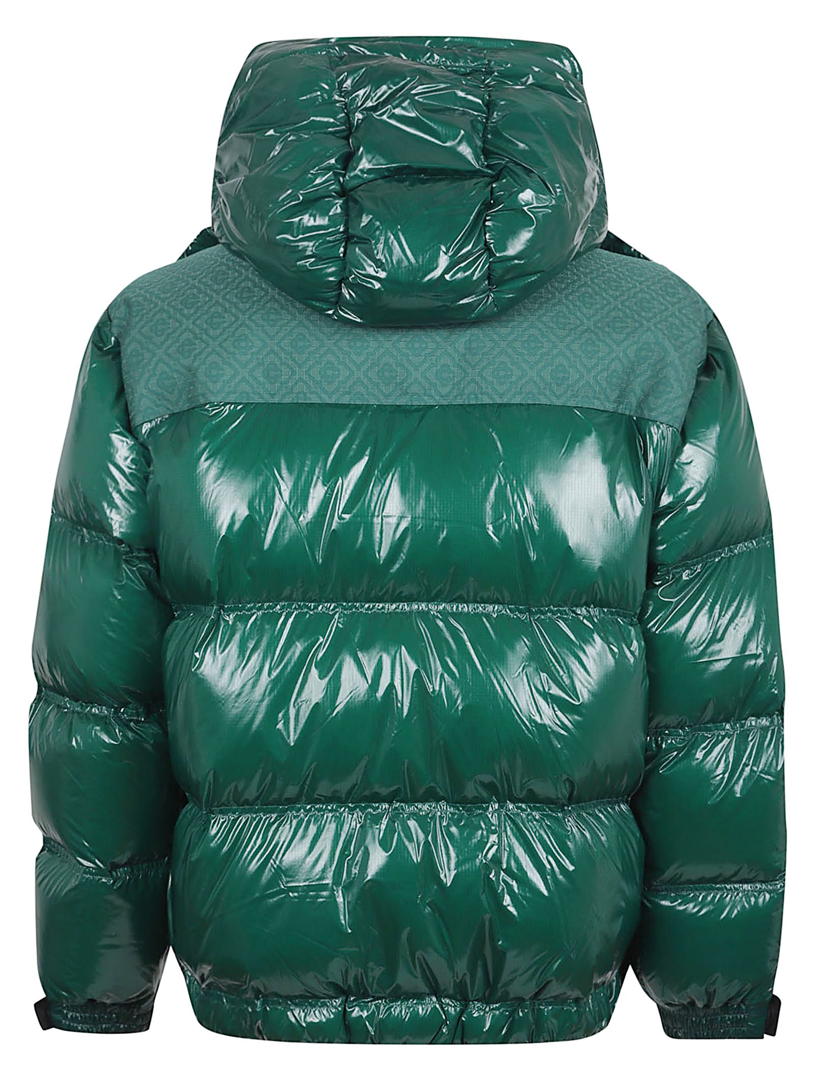 Piumino in nylon ripstop con imbottitura in piuma e pannello jacquard di CASABLANCA.Cappuccio con fermacorda con logo CC e coulisse; collo alto; chiusura con zip e linguetta con logo a diamante; tasche anteriori con chiusura a zip; polsini regolabili con logo; orlo e polsini elasticizzati; design vestibilità rilassata. Caratterizzato da monogramma a contrasto sulle spalle.