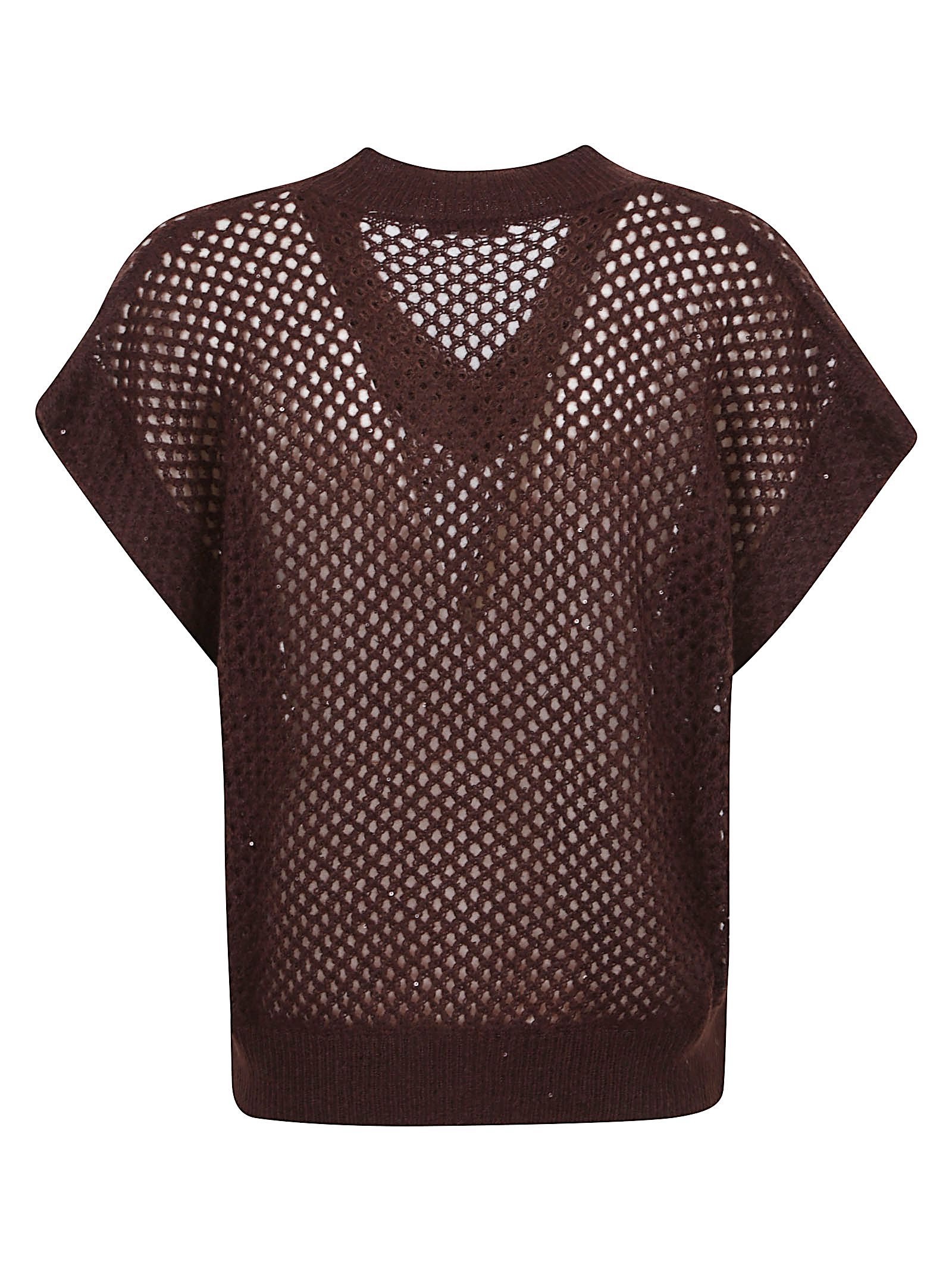 Gilet Dazzling Mesh in mohair, cotone e lana di BRUNELLO CUCINELLI.Classica rete impreziosita da paillettes; senza maniche, ampia apertura; scollo a V; profili in maglia a coste.Design vestibilità rilassata con spalla abbassata.