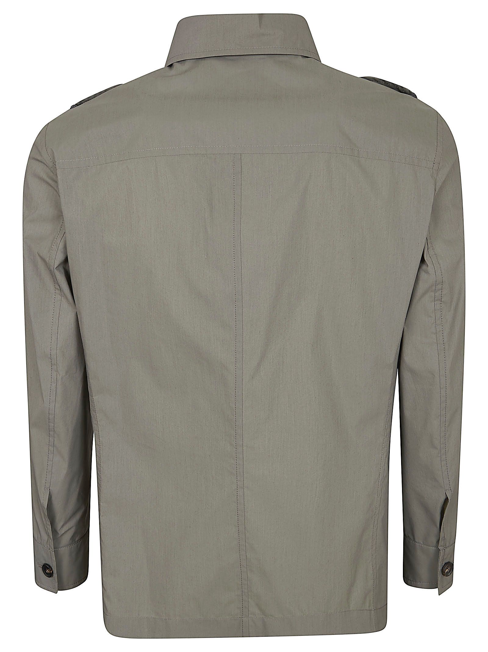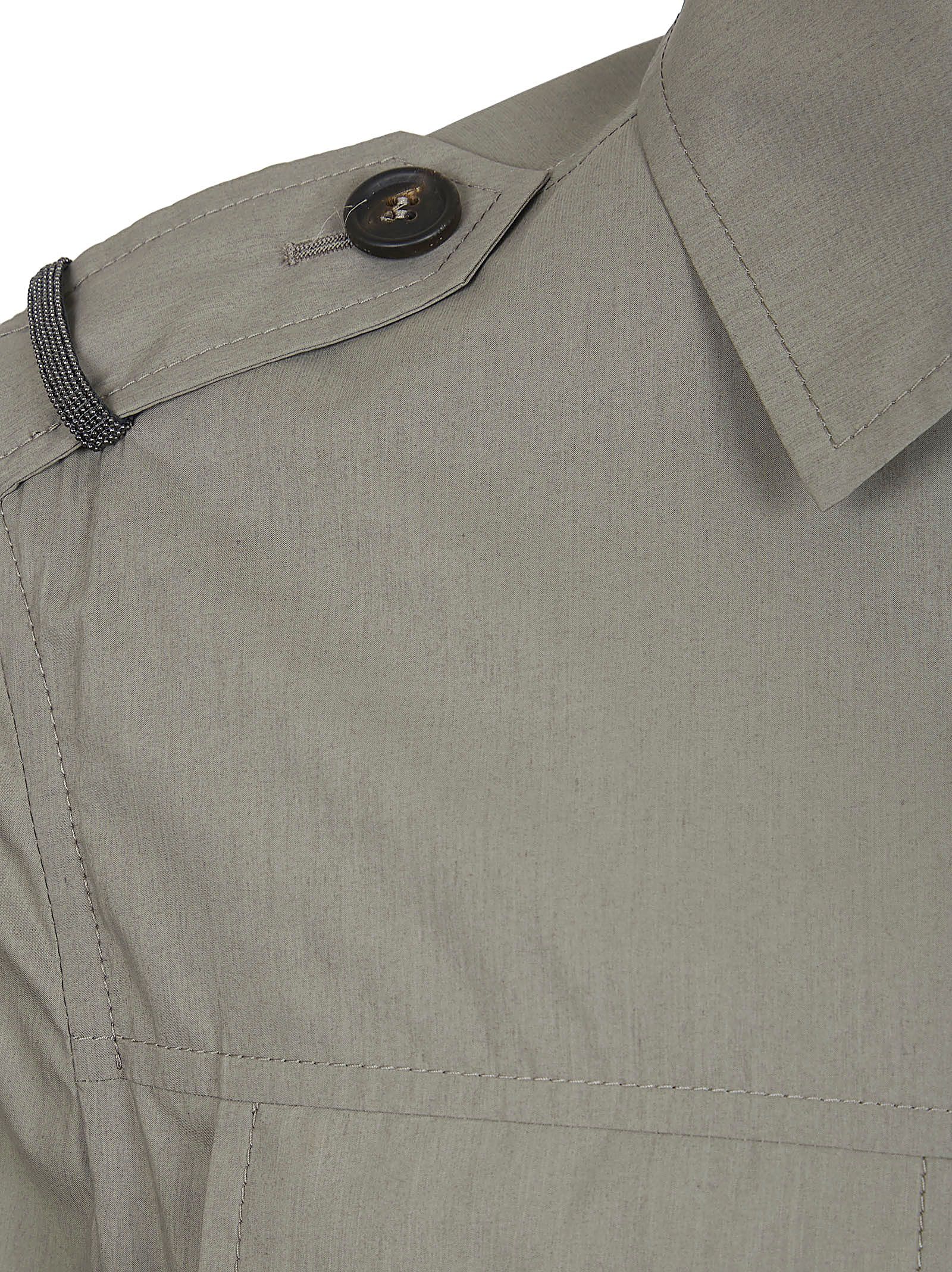 Outerwear in popeline leggero di cotone techno di BRUNELLO CUCINELLI.Colletto stile camicia; chiusura con bottoni in corno presenti anche sui polsini; tasche alte a toppa con patta e bottone e tasche basse a toppa con patta e bottone; grandi tasche a toppa con patta classiche delle giacche sahariane; design versatile e funzionaleCaratterizzata da ricamo in brillante monile Nickel-free e spallini con bottoni.